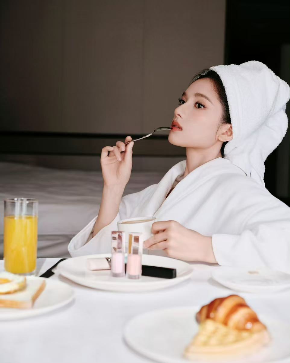 张婧仪白色浴袍,怎么简简单单的就这么美啊啊啊