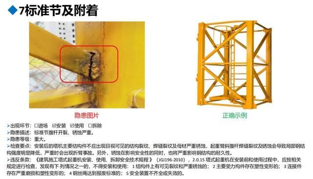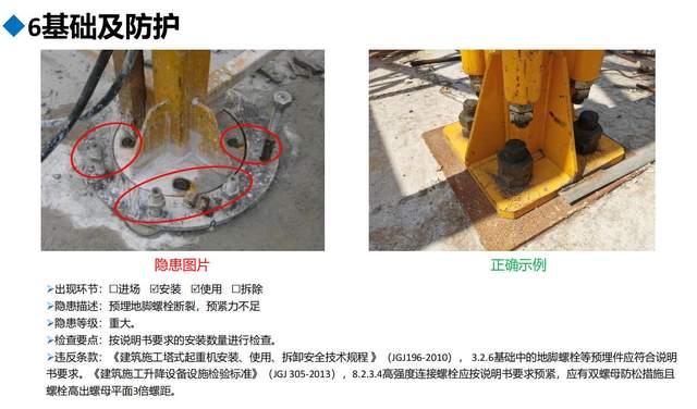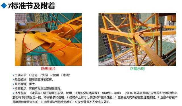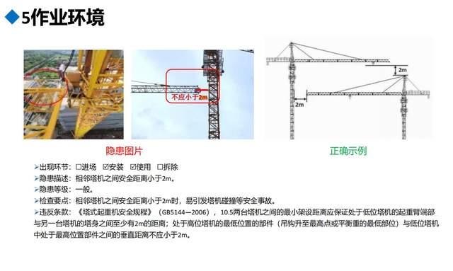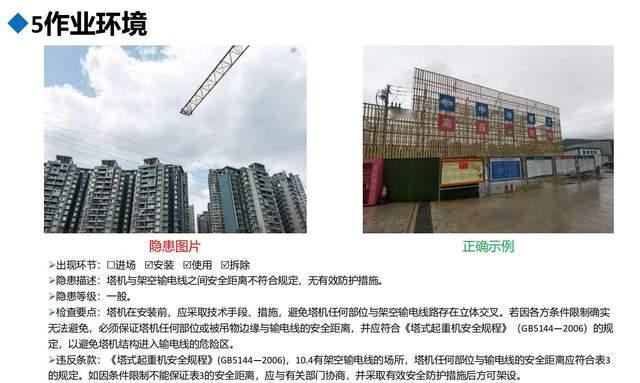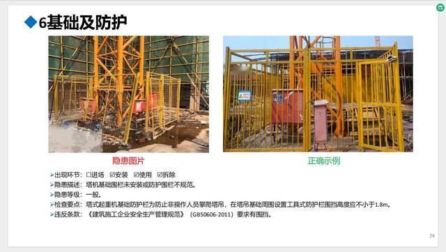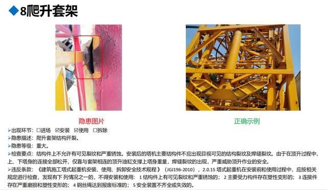 施工现场工程机械安全隐患识别图册(塔式起重机) 机械安全隐患全套135页,全套共计15大类包含资料审查,基础及防护,爬升套架,钢丝绳等内容包含施工现场隐患图片及正确示例,施工现场全套塔式起重机全套非常详细。 领取方式