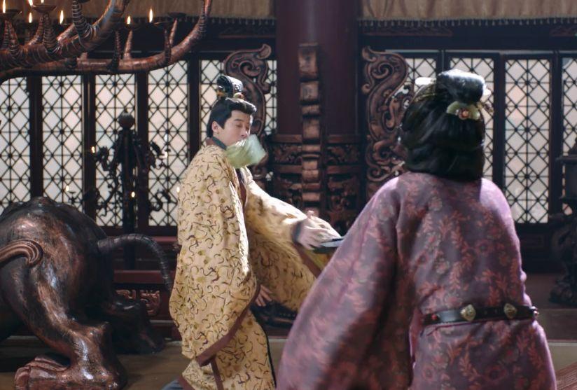 曹丕派人入宫向汉献帝索要玉玺,汉献帝浑身发抖地看着皇后曹节,曹节怒骂说:“父亲一