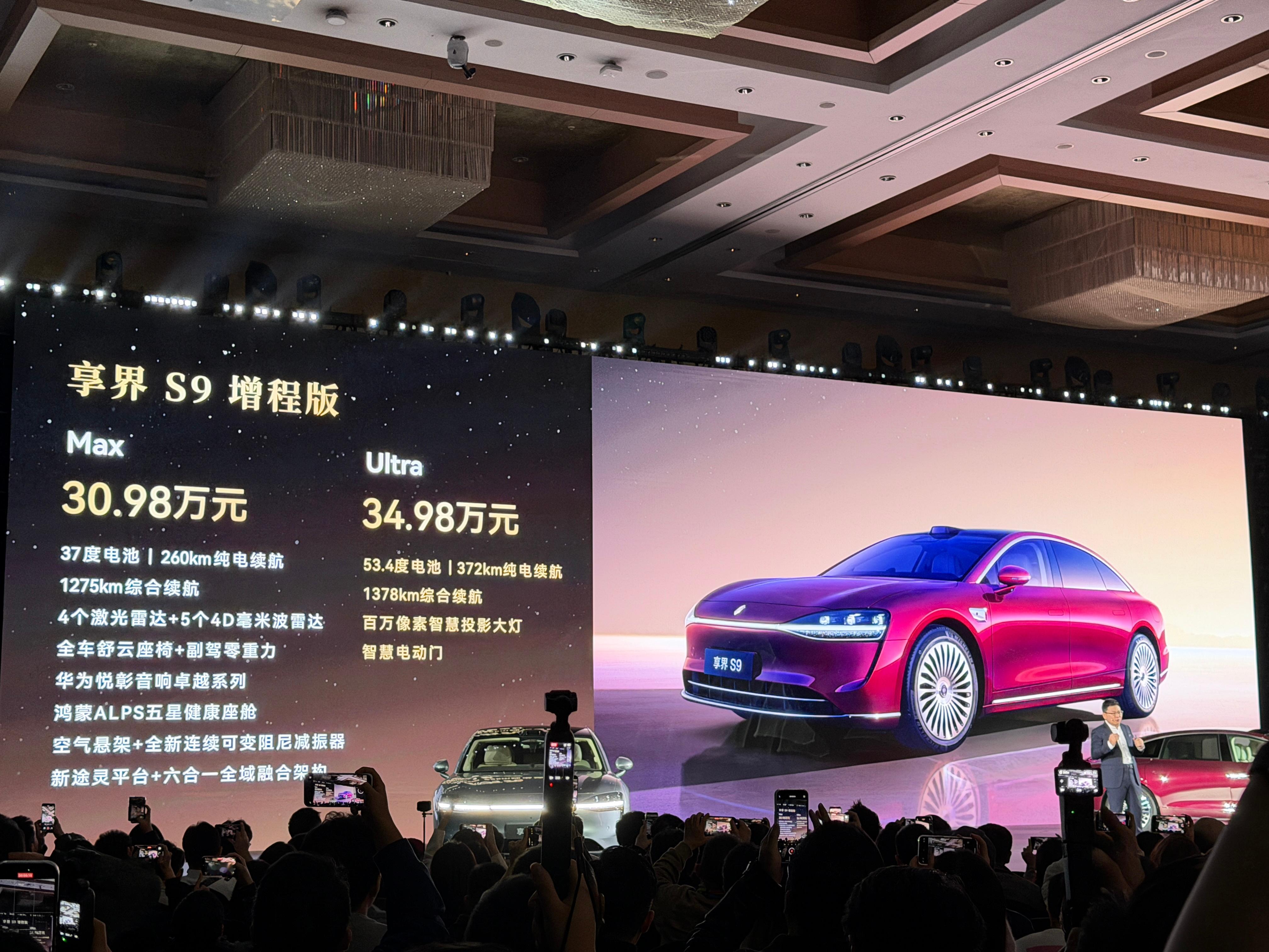 全新享界S9增程版:MAX 30.98万 ;Ultra 34.98万纯电版:MAX 32.98万 ;Ultra 34.98万