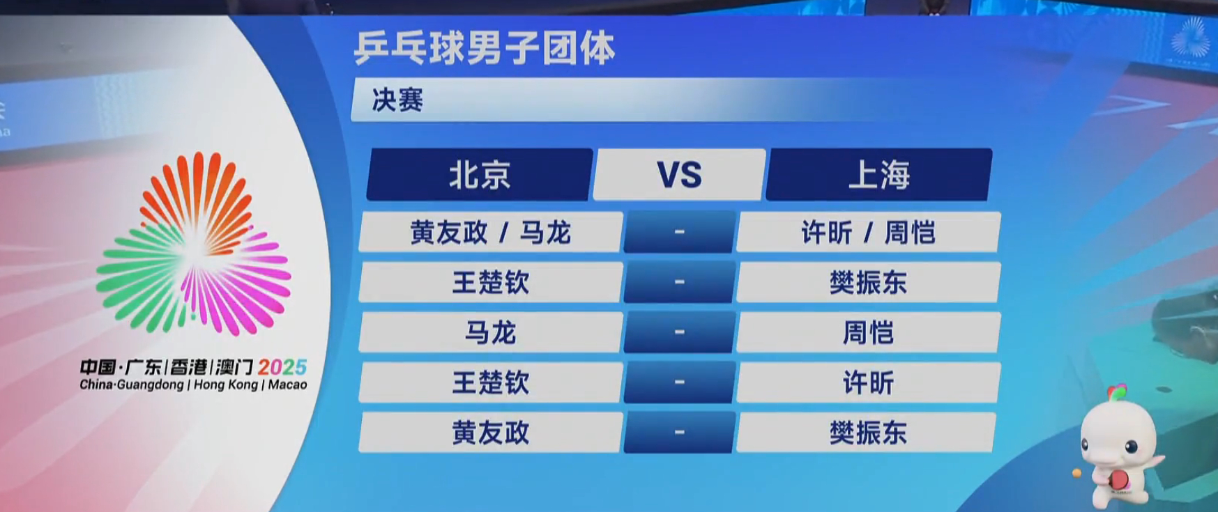 这是真正的巅峰对决,全运会乒乓球男团决赛对阵!