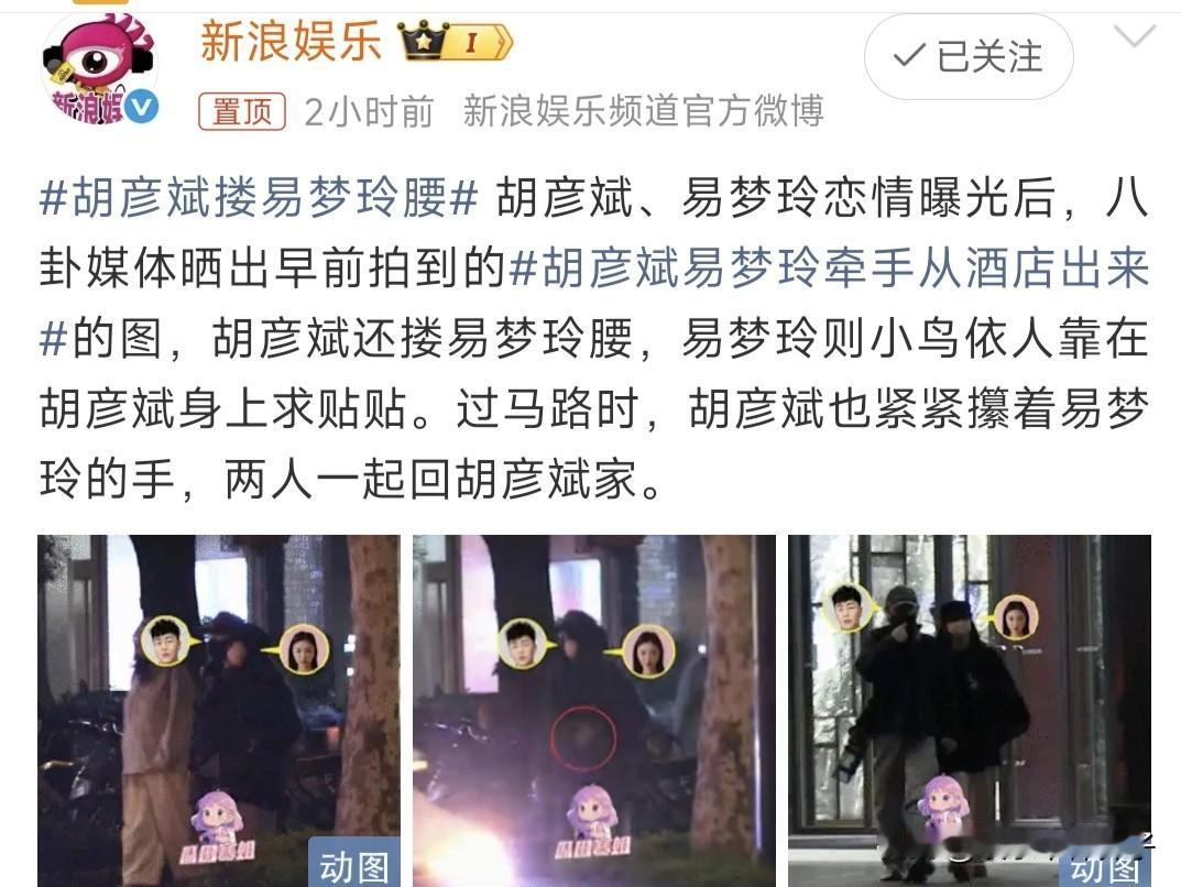 这下藏不住了吧!狗仔拍到胡彦斌易梦玲牵手从酒店出来…… 真是经不住念叨,上午,两