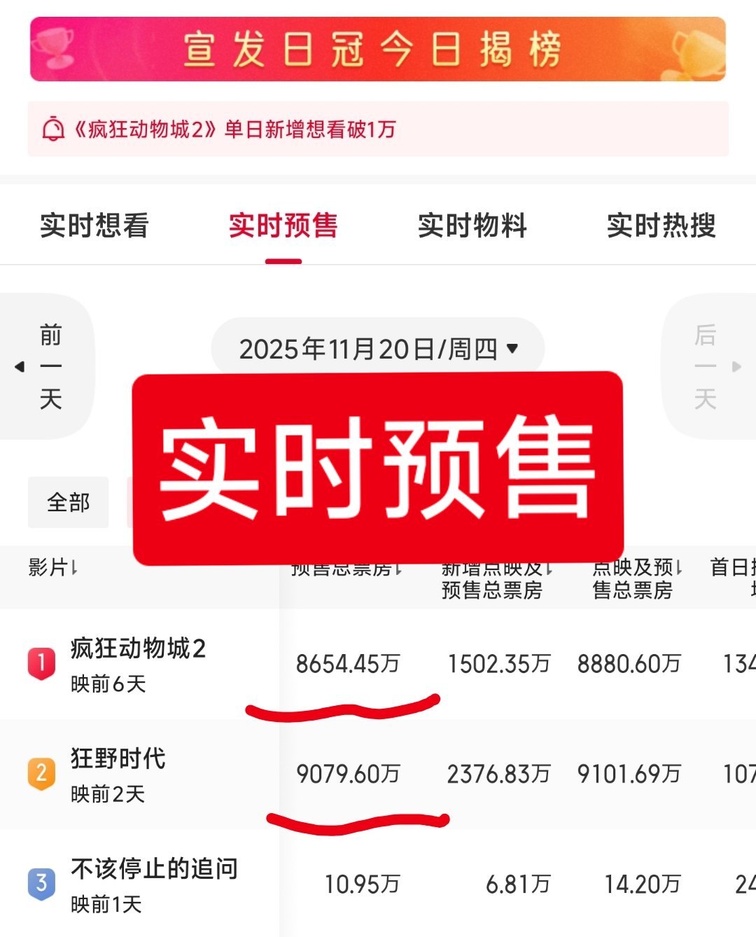 是谁在支持《狂野时代》,预售超越《疯狂动物城》9000万了,难道是易烊千玺在单抗?