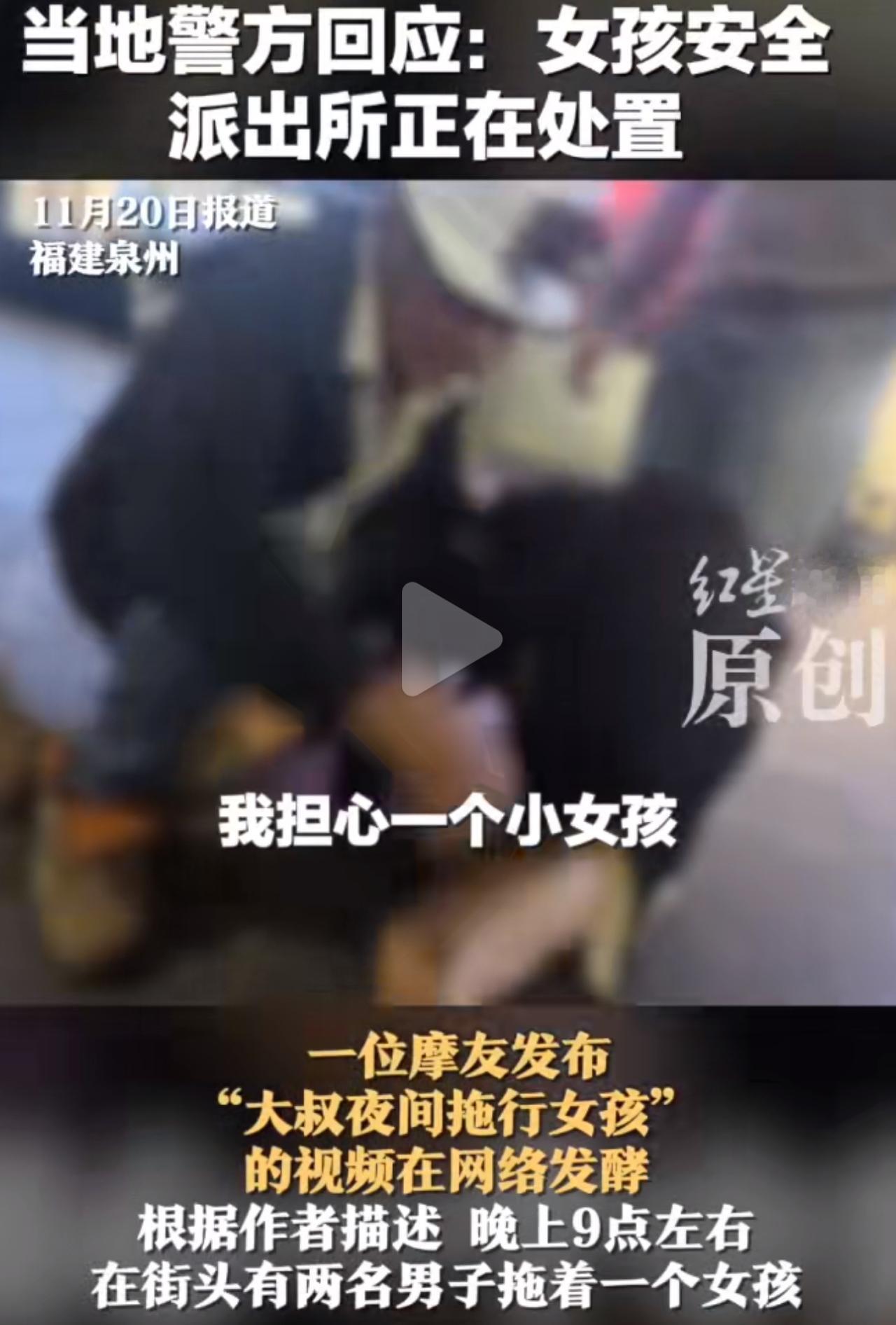 深夜的泉州街头,看得人头皮发麻!一个女孩浑身瘫软没一点反应,俩中年大叔一人拽头、一人拖腿,跟拖麻袋似的在地上拉,她的头好几次重重磕在路面上。 俩大叔嘴里喊着“嫂子喝多了,送她回家”,可旁人一问细节就露馅——刚开始居然说“不认识这姑娘”!路过的摩友一眼就觉得不对劲:哪有这么送熟人的?正常不都该搀扶着,再不济也得背着啊!他当即拦下俩人,硬要等警察来,还全程举着手机录像留证。 警察到场后把人都带走了,结果第二天就一句“女孩应该是安全的”,再没下文。这话直接让网友炸了锅:“应该”俩字太敷衍了吧?女孩是真醉了还是被下药了?俩大叔到底是谁?就算是熟人,这么粗暴拖行就不算伤害吗? 必须给这位摩友点爆赞!要是他当时怕惹事走开了,真不敢想这姑娘会遭遇什么。真心提醒大家,尤其是女孩子,晚上千万别一个人喝到不省人事。也盼着警方能赶紧查明白,把细节都公开了,别让“熟人”成为某些坏行为的遮羞布。泉州街头夜景 两大叔夜间拖行女孩 酒后