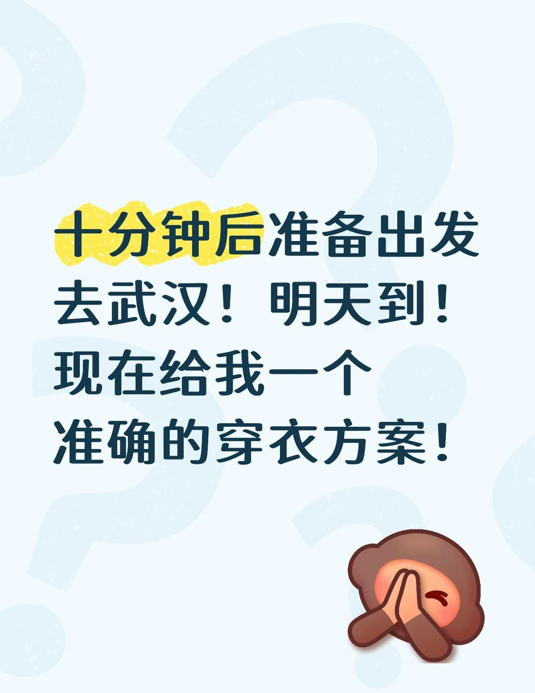 十分钟后准备出发去武汉!明天到!现在给我一个准确的穿衣方案!武汉 武汉天气