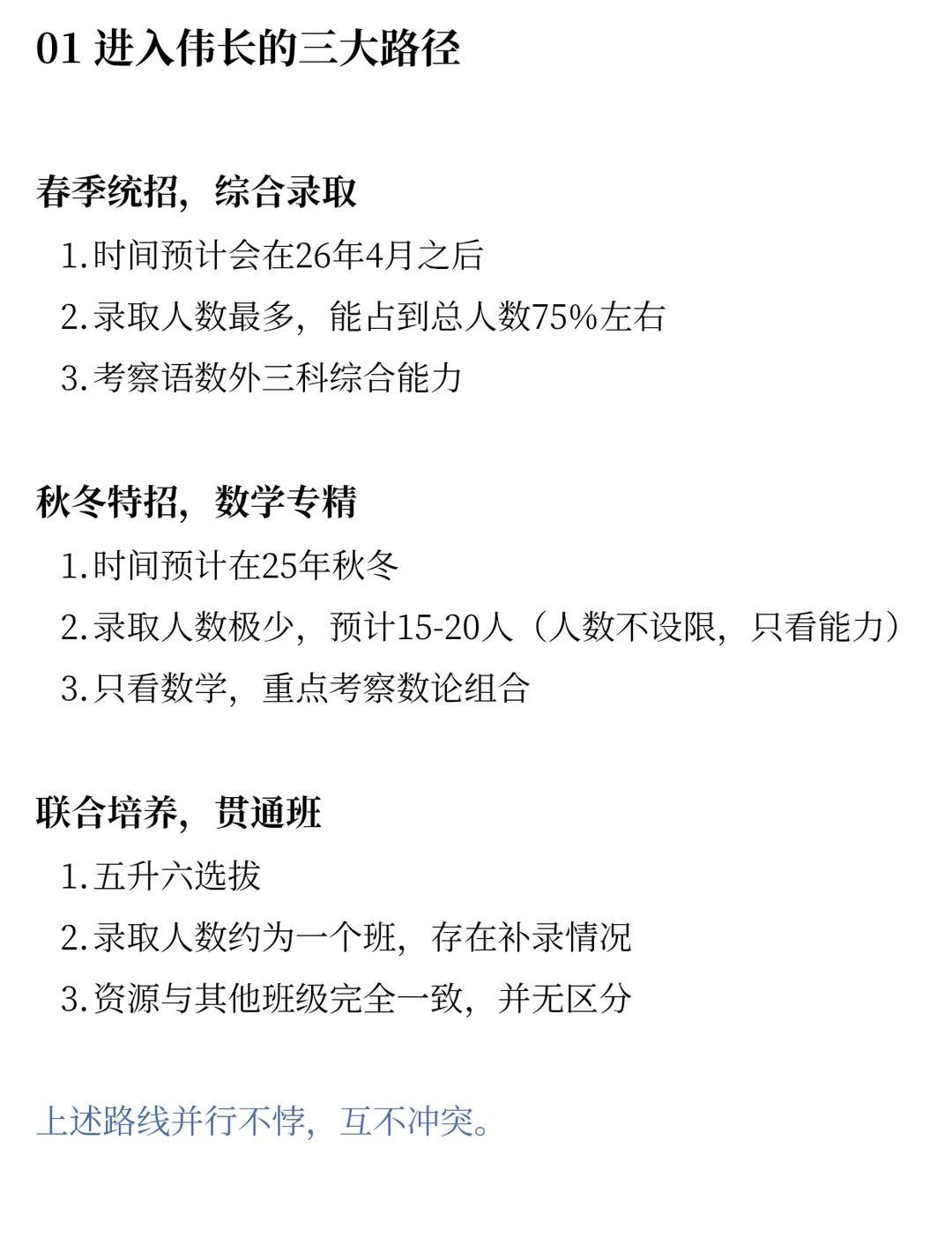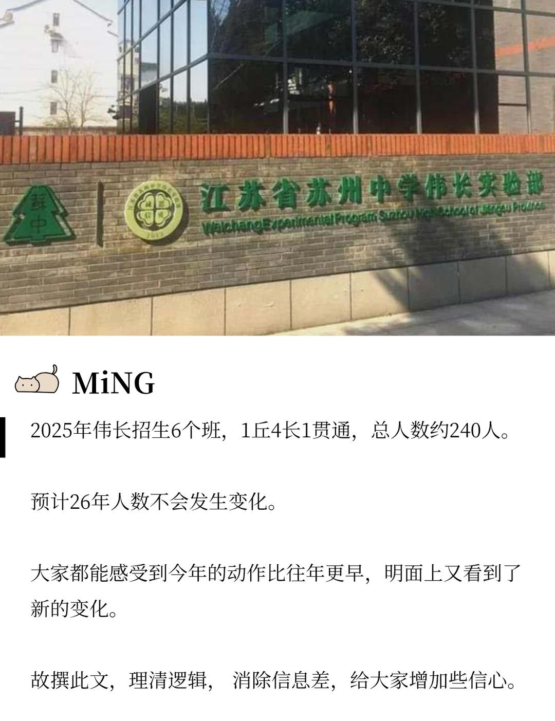 苏州孩子如何圆梦苏高中(1)——伟长篇 2025年伟长招生6个班,1丘4长1贯通,总人数约240人。 预计26年人数不会发生变化。 大家都能感受到今年的动作比往年更早,明面上又看到了新的变化。 故撰此文,理清逻辑, 消除信息差,给大家增加些信心。 全文包括三个主题: 01 进入伟长的三大路径 02 各大路径的选拔需求 03 具体规划 多元升学途径 学业规划 择校 苏E好学 小明数学 苏州 苏州中学