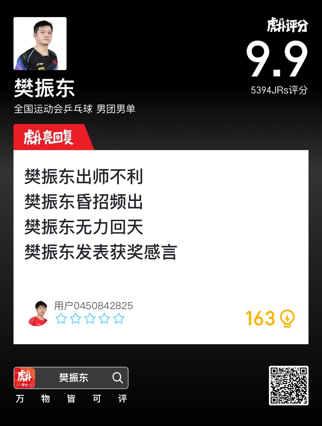 国乒一单对决!乒乓男团决赛:樊振东3-1胜王楚钦,上海队盘分1-1平北京队全运会