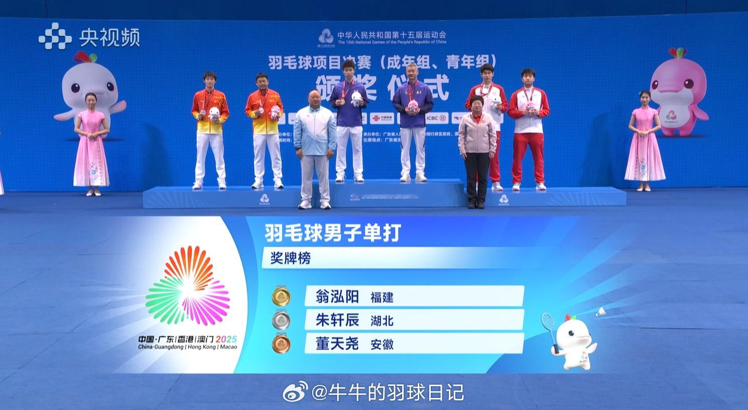 男单 决赛 第4场翁泓阳(福建)21-10 21-18 朱轩辰(湖北)恭喜小翁夺