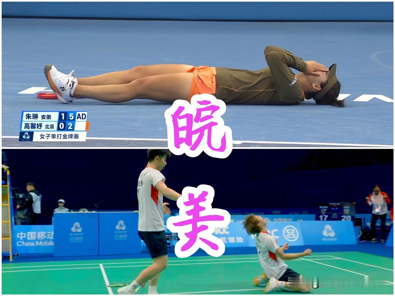 今天,安徽在全运会上爆发! 获得2枚沉甸甸的球类金牌! 记住这3人: 朱琳, 刘阳, 刘毅 在深圳市体育中心体育馆刚刚结束的羽毛球男双比赛中,刘阳/刘毅以2:1艰难战胜王昶/谢浩南(浙江),获得全运会羽毛球项目最后一个冠军,帮助安徽队获得第7枚金牌。 下午在广东横琴国际网球中心进行的网球女单比赛中,朱琳2:0轻取高馨妤(北京),获得全运会网球项目最后一个冠军,帮助安徽队获得第6枚金牌。 今天拿下这2枚份量极重的金牌后,安徽队在本届全运会竞技项目上所获的金牌数锁定为7枚~还不错! 全运会 安徽身边事 提到安徽,你首先想到的是什么 朱琳网球