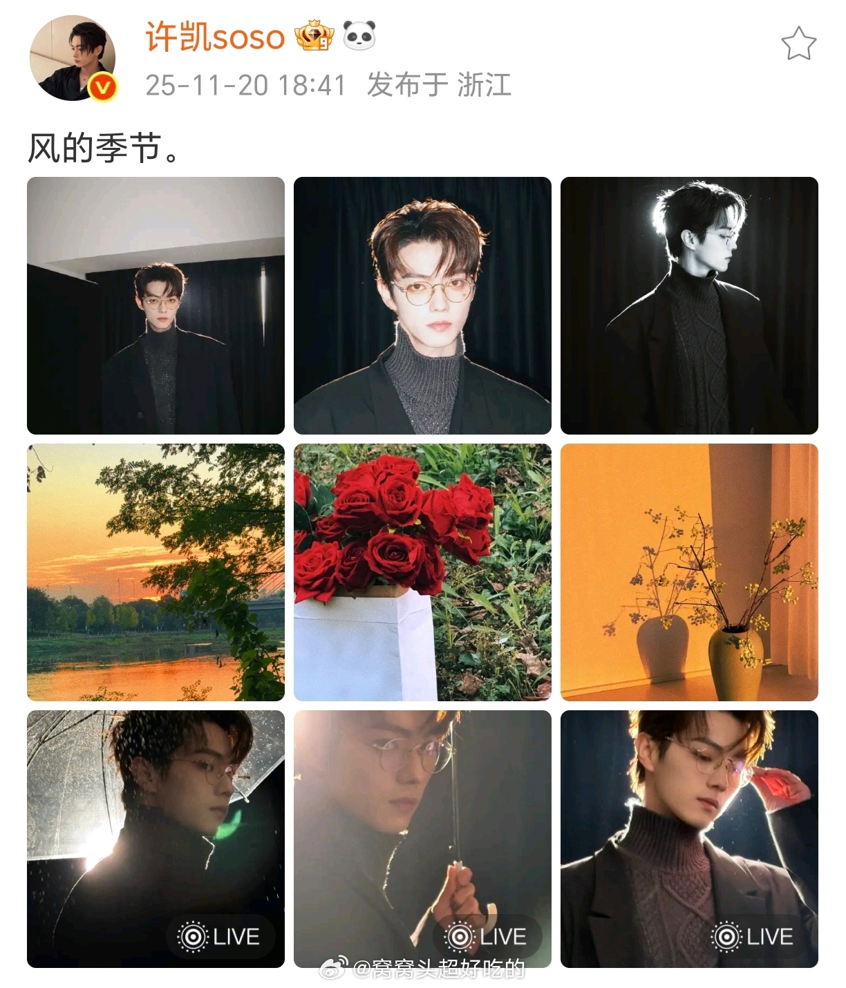 许凯微博更新~soso就硬帅啊,高领的神