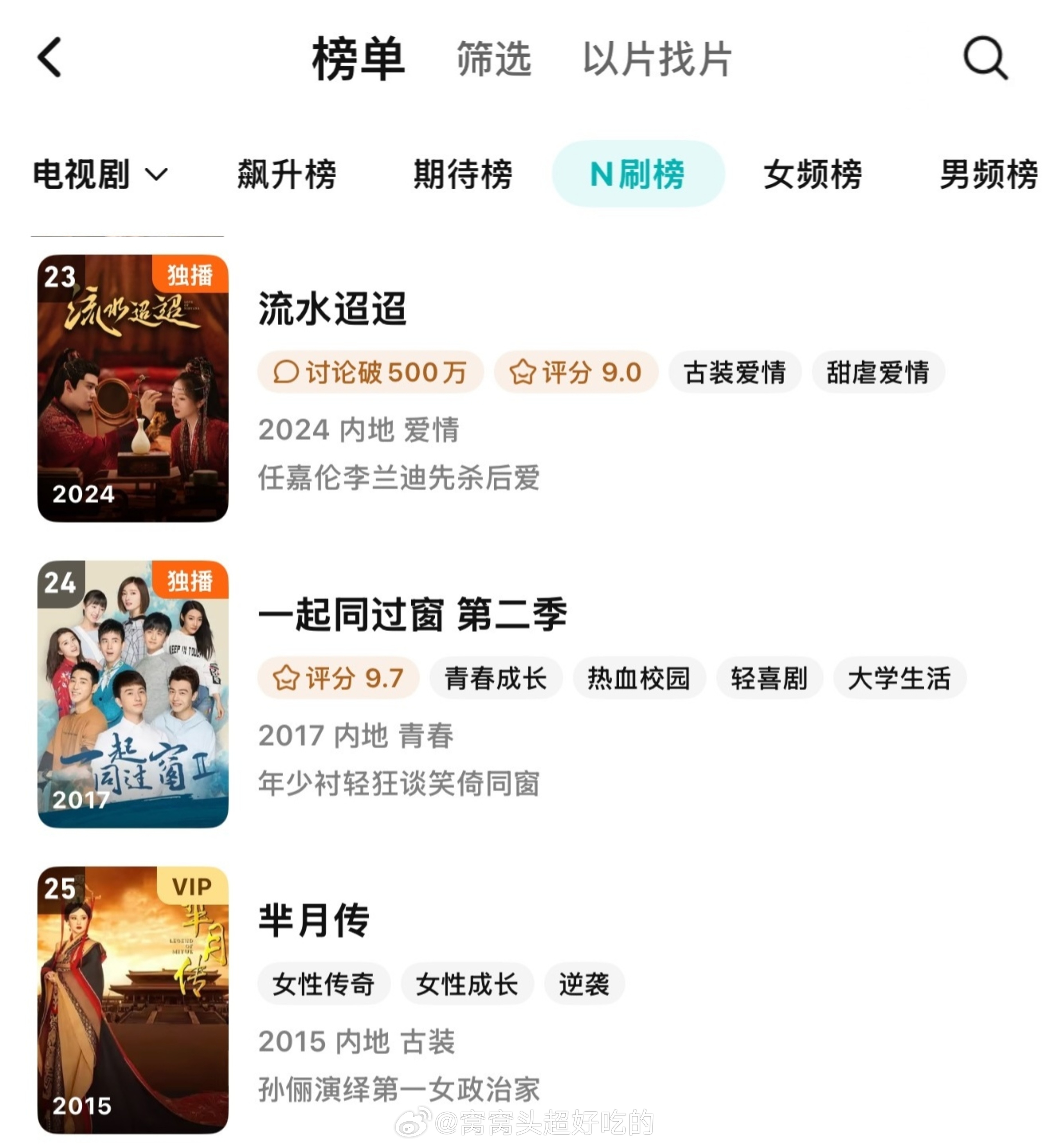 流水迢迢又进了腾讯N刷榜,年榜钉子户鹅和各大平台都喜欢国超太正常了