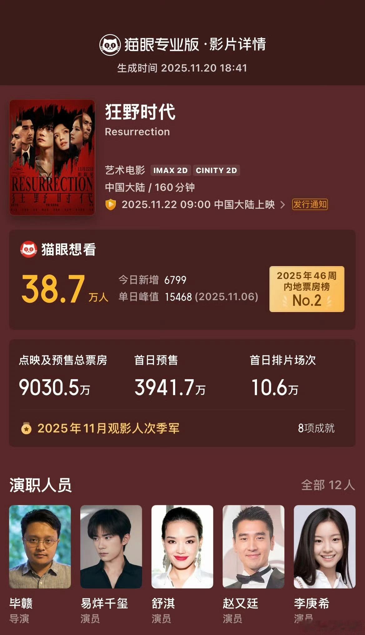 龚俊包场支持《狂野时代》了!该片由领衔主演,正在预售中,11月22日,影院