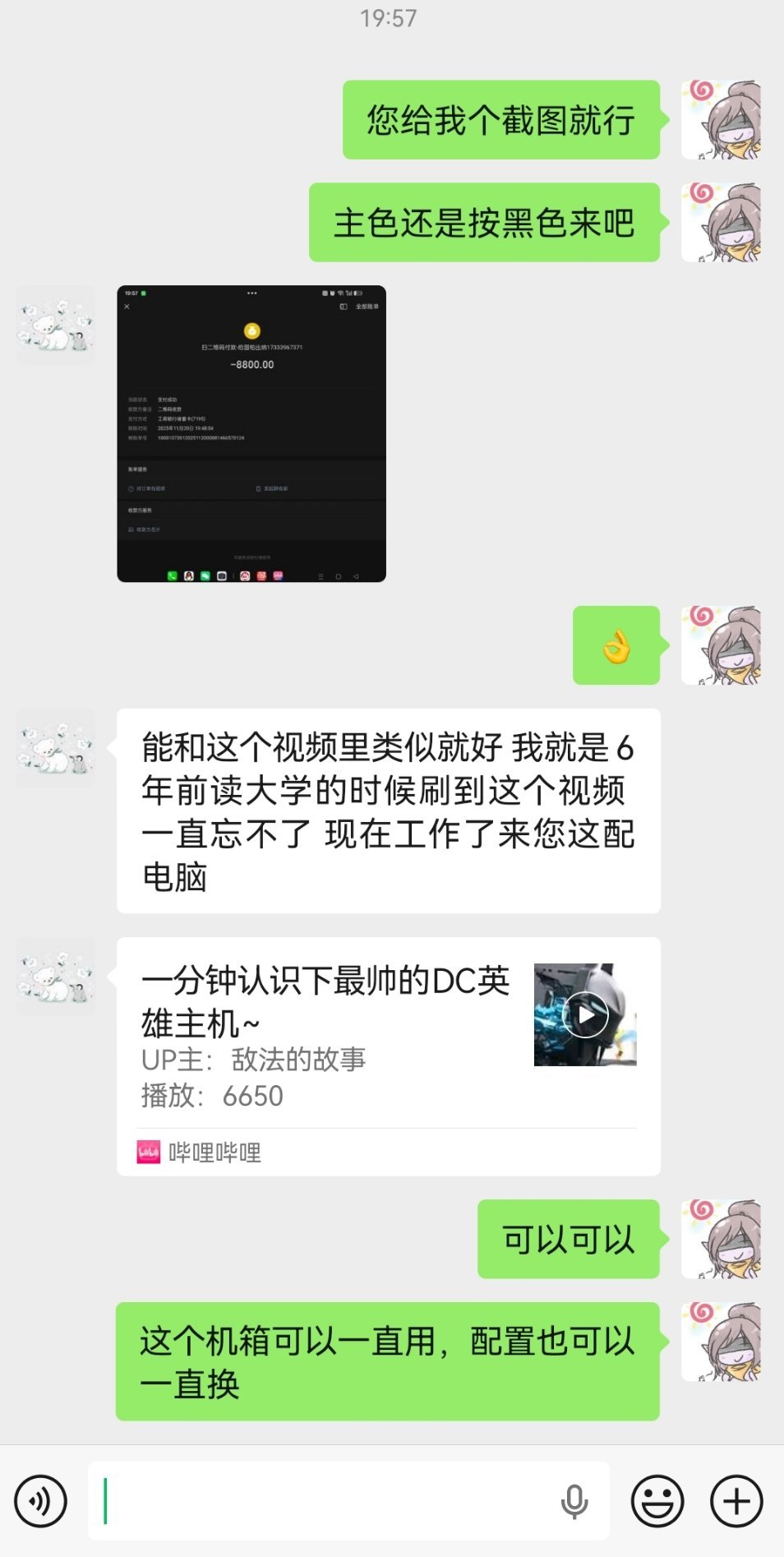 时隔一年多了,又定出去一台蝙蝠侠机器。客户是六年以前读大学看到我们视频的,念念不忘,今年下单了蝙蝠侠定制机箱。其实我们只剩最后3台了,然后就绝版了。