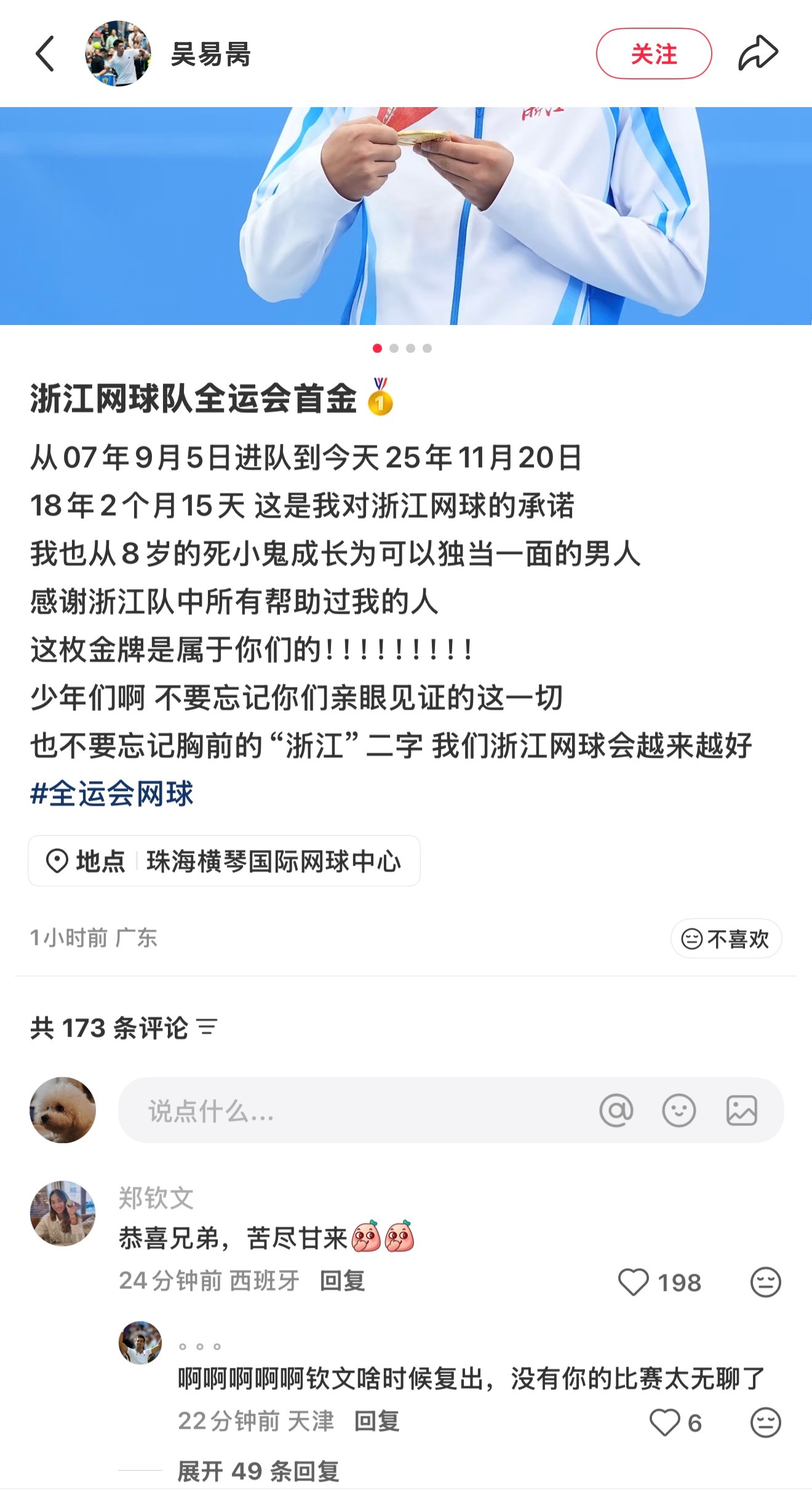 我文给兄弟留言了,IP在板鸭 ,其实我文的职业生涯难道不也是一种苦尽甘来吗?