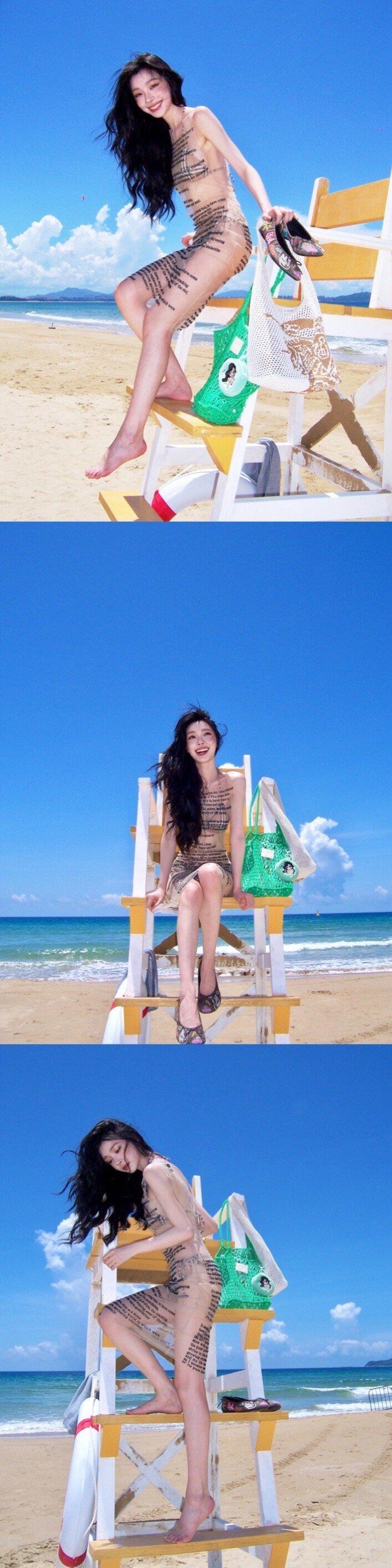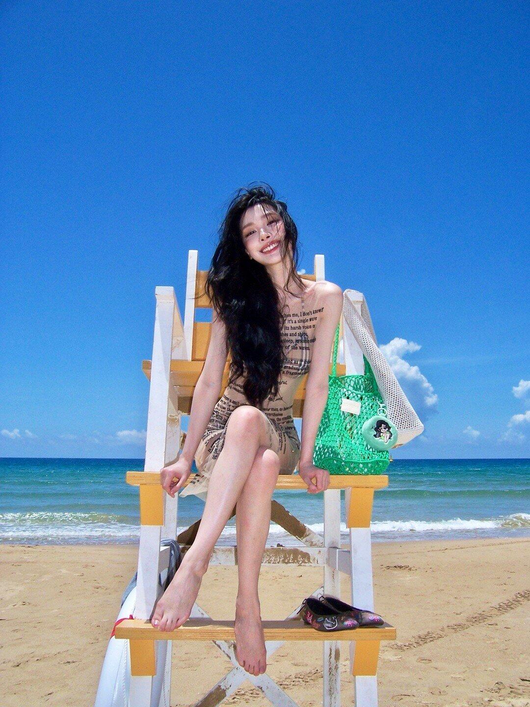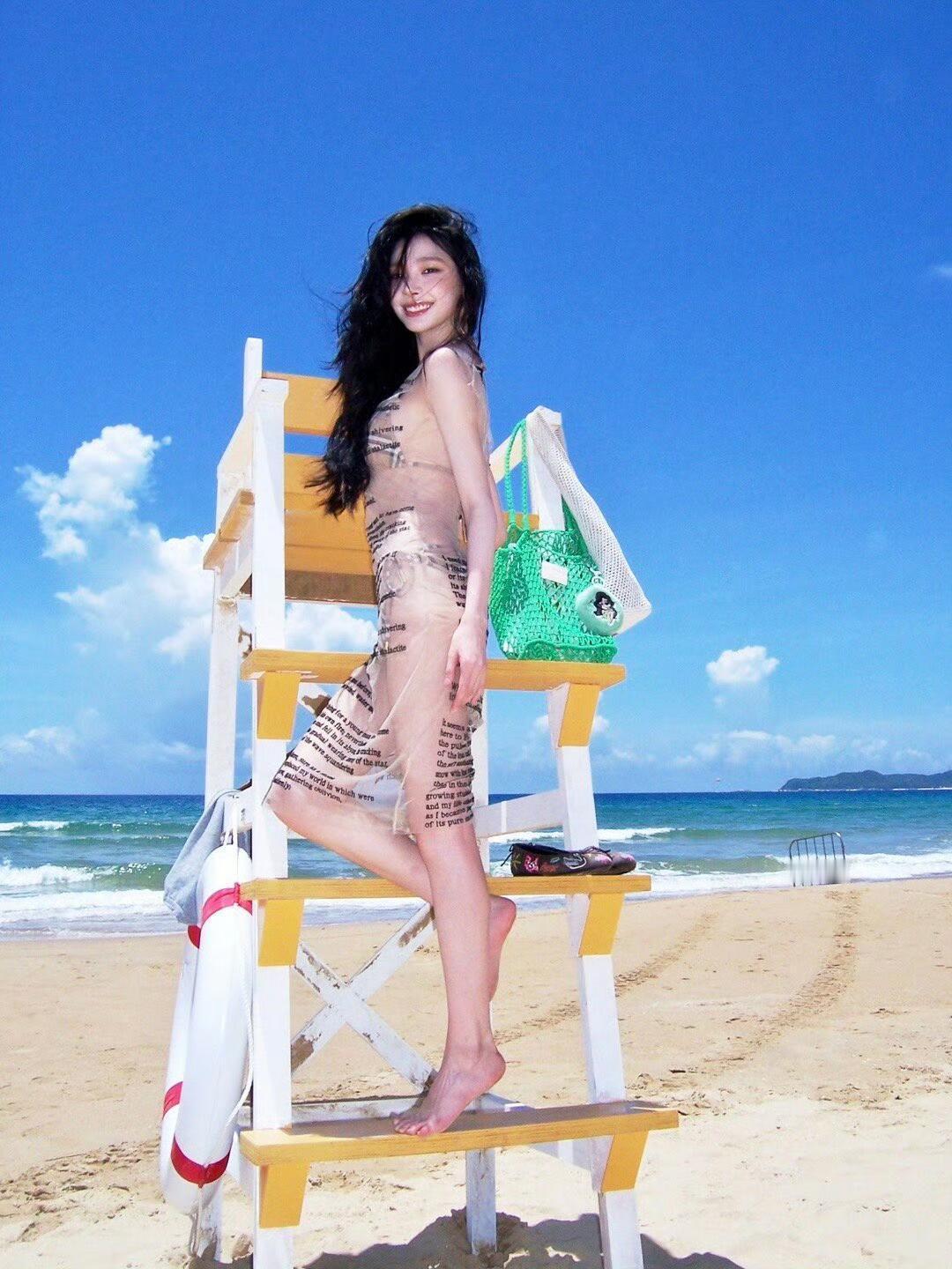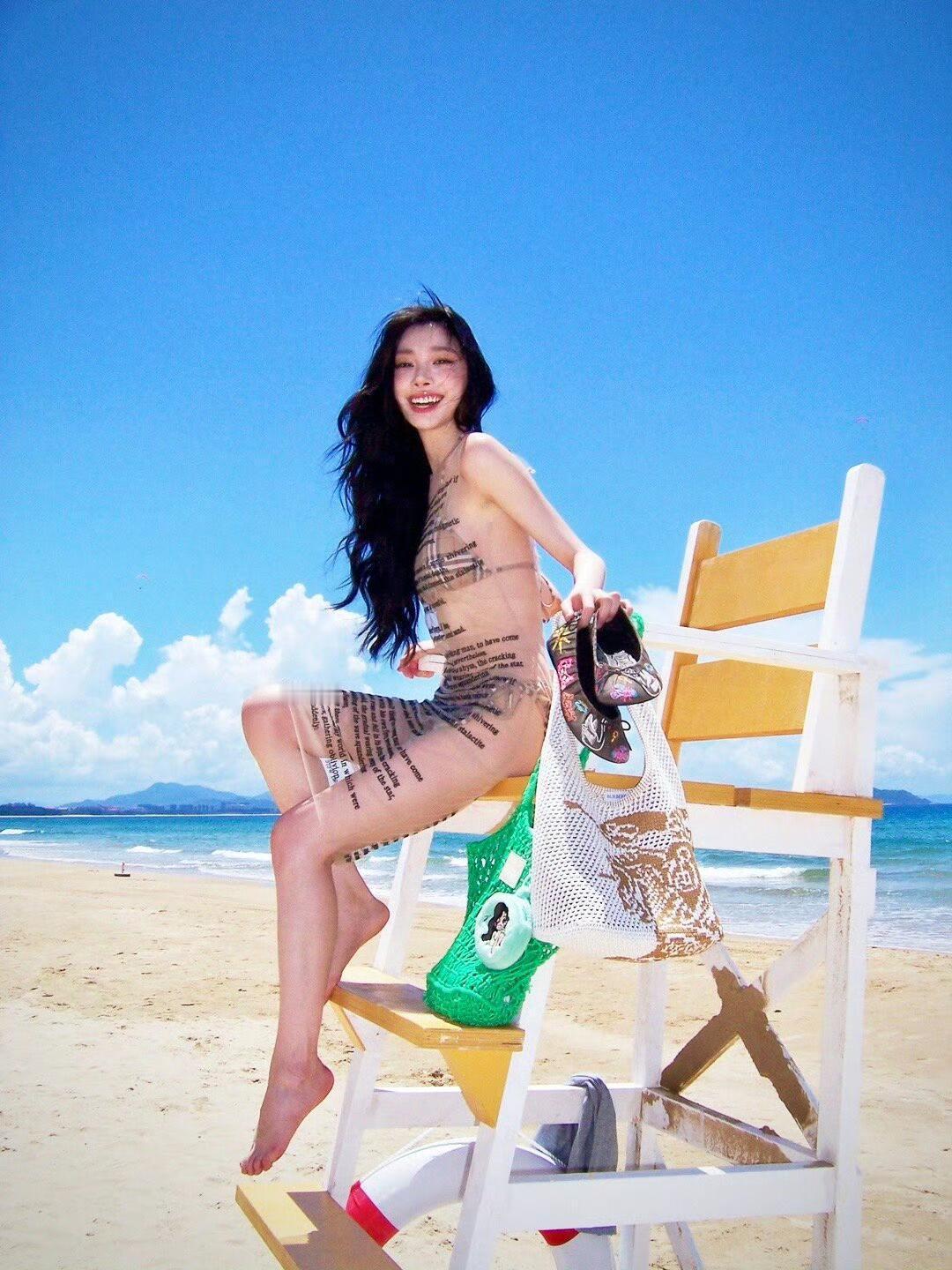 易梦玲这身海边造型太戳“慵懒辣妹感”了!透视字母连衣裙叠搭Burberry格纹比基尼,性感里裹着松弛;配同品牌编织包,海边度假的松弛贵气直接拉满,是“又欲又美的度假模板”~ 易梦玲 易梦玲同款