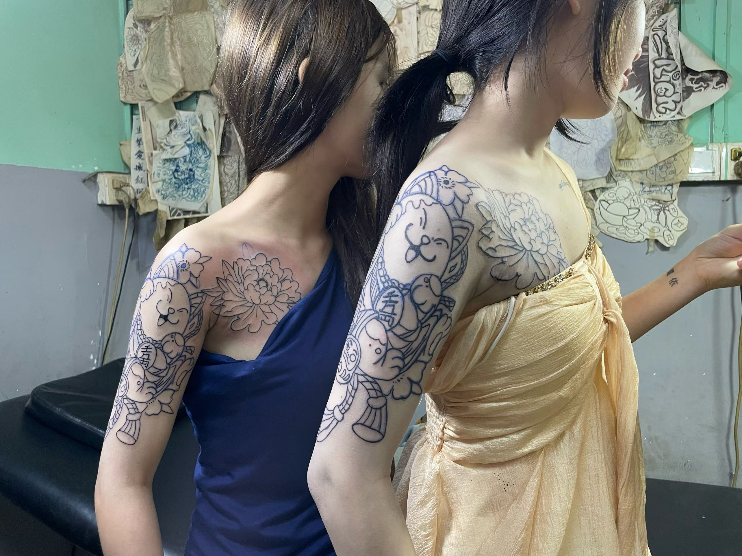两个小姐姐一起来纹个大臂原创视频 个性纹身 花臂纹身 黄埠纹身黄埠那里有纹身的