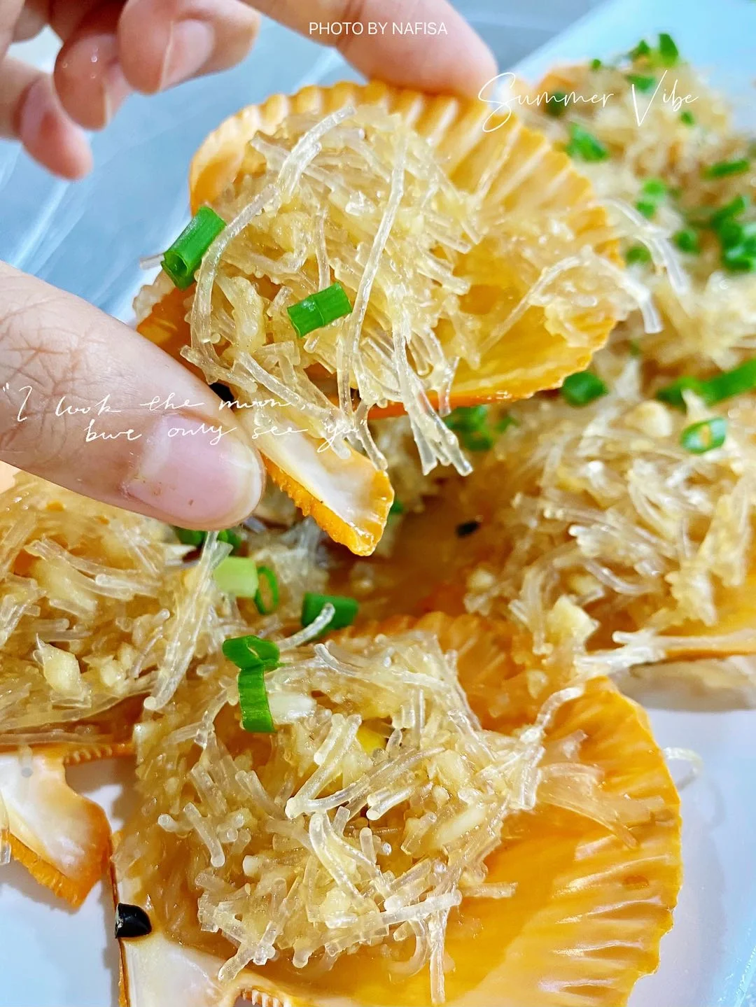 2⃣️「蒜蓉粉丝蒸扇贝」是那种小扇贝,不过味道可以的,而且加了很多粉丝,葱香味[调皮]我们点了8只还额外送了2只,感谢感谢