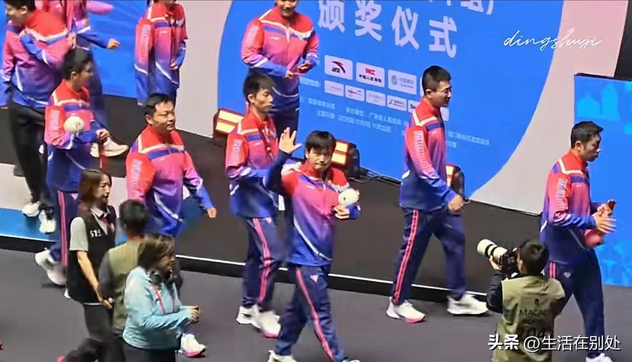 合影后,就地解散……樊振东挥手,180度前后向球迷告别,然后径直离开。 全运会乒乓球男团颁奖完毕,意味着第十五届全运会乒乓球项目圆满收官,上海乒乓球球队聚拢一起,拍了合影,然后就地解散。 四年一次的全运会渐入尾声,看见樊振东挥手向球迷告别,留下一个渐渐远去的背影,就知道又快到说再见的时候了。 东哥,带着全运会一金一银的战绩,很快又要去欧洲了,12月他又要开启自己的征战。 第十五届全国运动会将于21日在深圳闭幕。