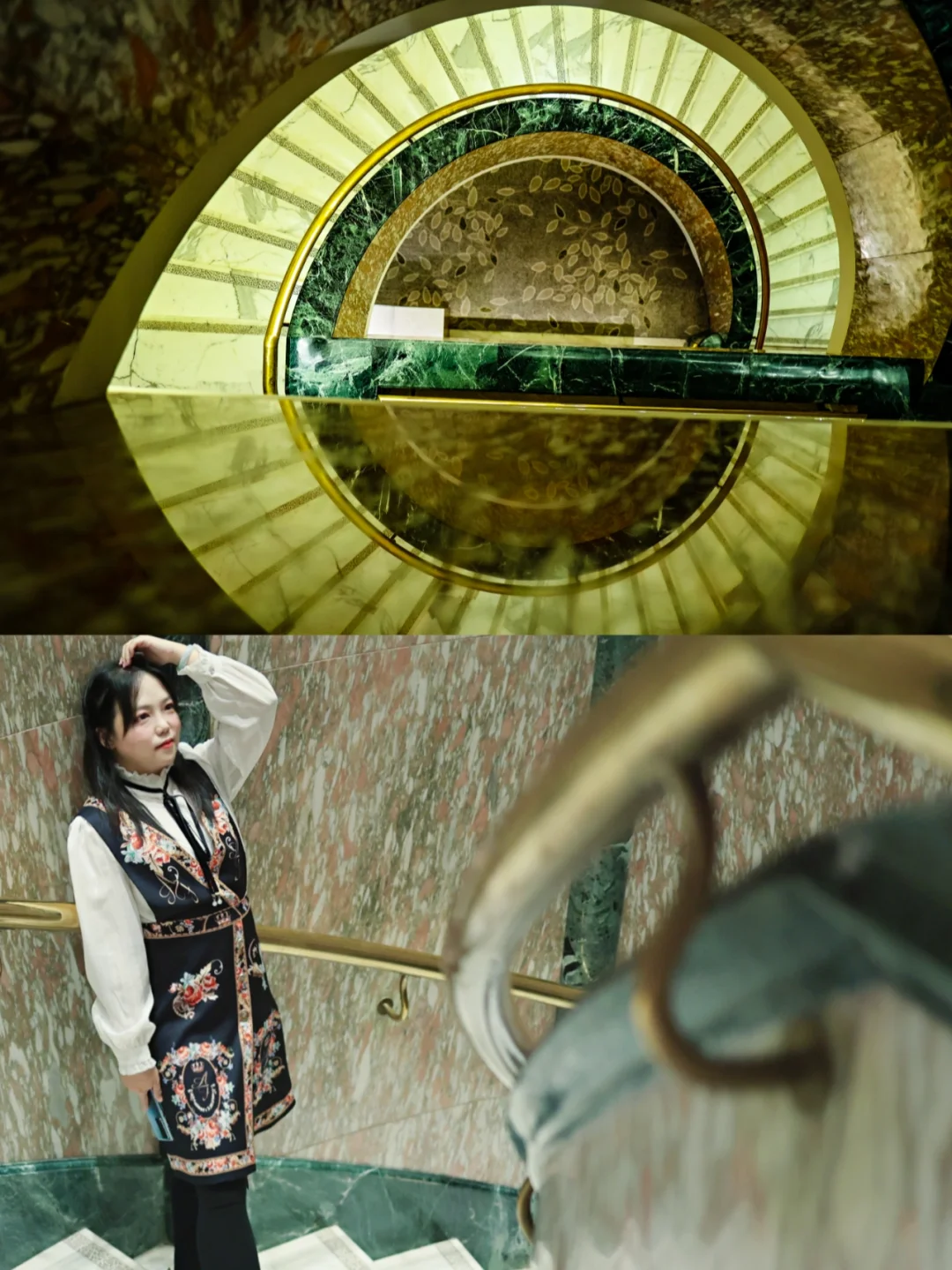 1、 酒店60-62层的旋转楼梯,💃华丽浪漫,自带金色打光效果。