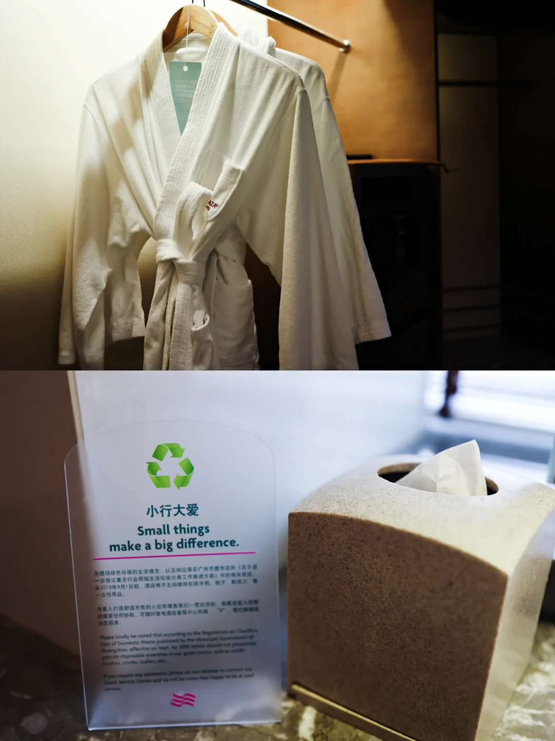 🍀小行大爱,最后要特别点赞酒店的绿色理念。不再主动提供洗漱用品。住客如需要使用可向酒店前台索要,既能满足刚需住客需要,又能实现节约。
