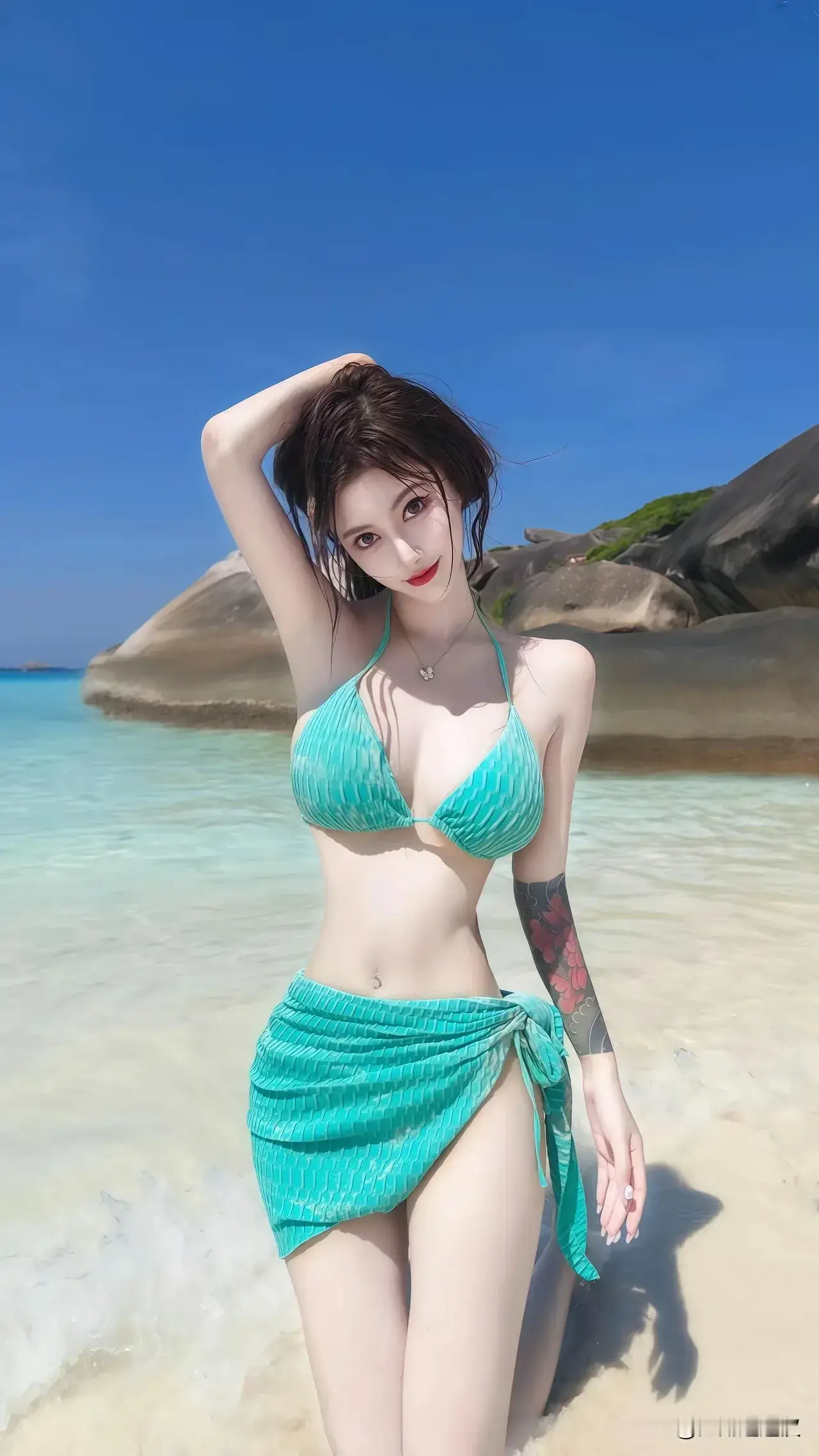 夏日生活打卡季 救命!小姐姐这海边泳装照让我疯狂想“逃离城市”!你看绿色这套和清澈海水绝配,绑带裹裙把海岛风情拉满,纹身小姐姐又美又飒。!在海边吹着凉爽的风、踩踩浪花,比在城里被热浪追着跑舒服太多!不管什么身材,穿喜欢的衣服去海边撒欢,自信就是最美的底色~ 无不良引导,纯分享这份海边快乐,谁看了不想立刻出发!海滩比基尼照 海滩美女泳装照 海滩美女照 美女沙滩度假图