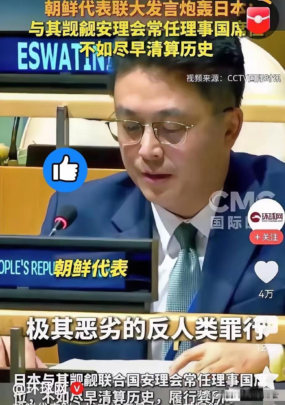 朝鲜已经心领神会! 朝鲜是真可交,在中方多次提出对日方的不满后,朝方也是积极跟进,朝鲜代表在联合国大会的发言,堪称直接炮轰日本军国主义,字字戳中要害。 ​​当年日本军国主义犯下的滔天罪行,给亚洲人民带来了刻骨铭心的灾难。 ​可它至今不愿正视历史错误,连一句坦诚的道歉都吝啬给出,更别提兑现应有的赔偿,这般毫无悔意的姿态,实在让人不齿…… ​​朝鲜的发声从不是盲目跟风,而是正义的共鸣——历史不是任人篡改的草稿,那些牺牲与苦难,每一个亚洲国家都无权遗忘。 ​敢在联合国公开叫板军国主义,这份勇气背后,是对和平的坚守,更是对正义的敬畏…… ​​更难得的是这份国际默契:中方亮明立场,朝鲜主动呼应,不是抱团对抗,而是用共同的声音告诉世界,歪曲历史者终将被孤立。 ​那些妄图洗白侵略的小动作,在正义面前不过是自欺欺人……如今,国际局势风云变幻,仍有一些别有用心的势力试图为日本军国主义的恶行开脱,甚至拉帮结派营造有利于日本的舆论环境。但他们忘了,正义或许会迟到,却永远不会缺席。朝鲜与中国在国际舞台上的相互配合,就像两颗闪耀的星芒,照亮了被历史迷雾遮蔽的真相。 日本国内部分政客还在参拜靖国神社,试图美化侵略战争,这种倒行逆施的行为让每一个有良知的人都感到愤怒。而朝鲜和中国的坚定发声,如同汹涌浪潮,冲击着这些妄图掩盖历史的丑恶行径。 在未来的国际交往中,相信会有更多国家看清日本的真面目,加入到维护历史真相、捍卫正义的行列中来。朝鲜与中国的这份国际默契也必将持续下去,成为守护亚洲和平与正义的坚固防线,让那些企图歪曲历史、破坏和平的势力无所遁形,让正义的光芒普照大地。