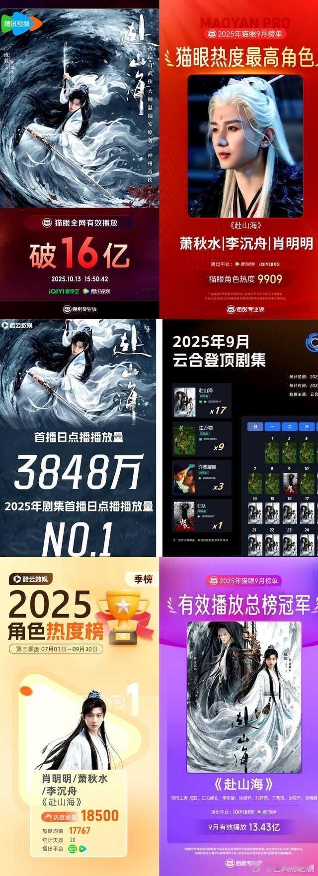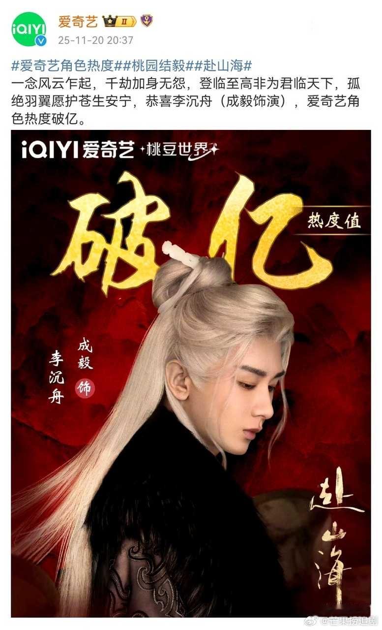 成毅《赴山海》里面饰演的另一个角色李沉舟热度也破亿了!这部剧其实播的很好首日爆开9月全网播放量断层第一,但是当时天天都是黑热搜防爆,这次爱奇艺财报可以看到赴山海带动的会员和超点收入比暑期档都多,说明看这部剧的观众真的很多,就是被压热度了。