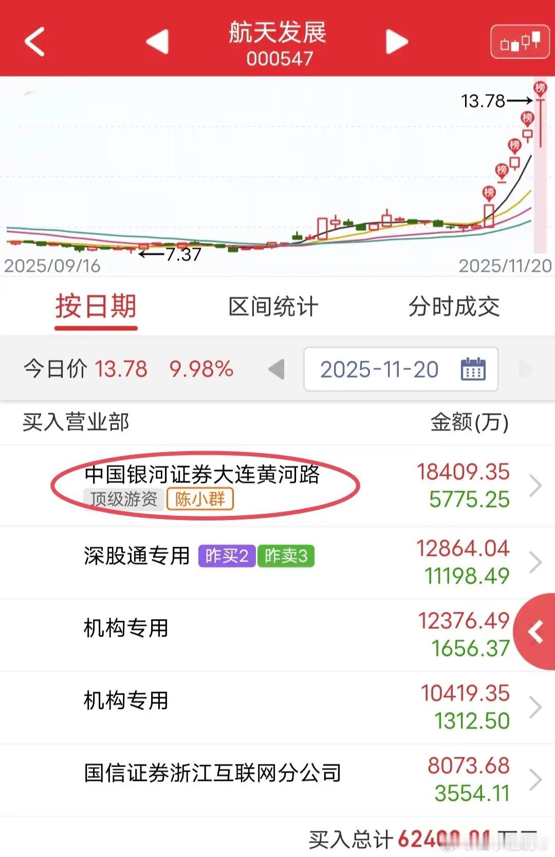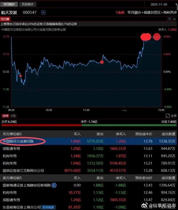 陈小群1.8亿瞬间扫盘封板:今天尾盘都在吹“陈小群概念股”,主要就是航天发展和九