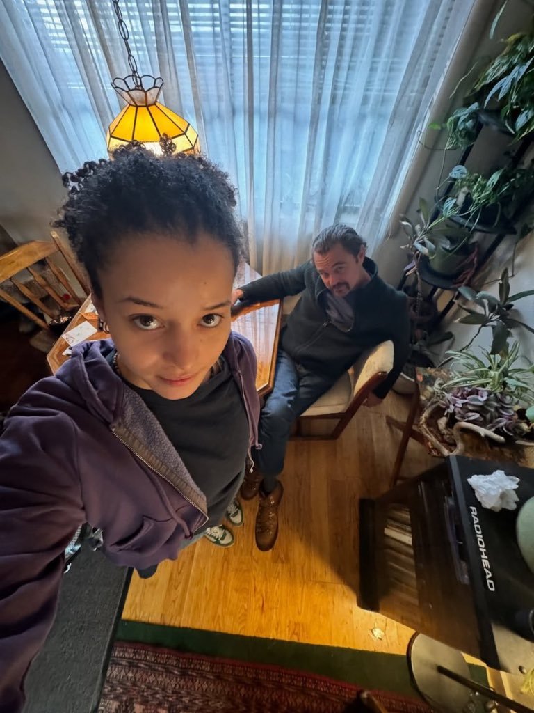 蔡斯·英菲尼迪与莱昂纳多·迪卡普里奥在《一战再战》(2025)片场的合影是死亡俯视角度啊!