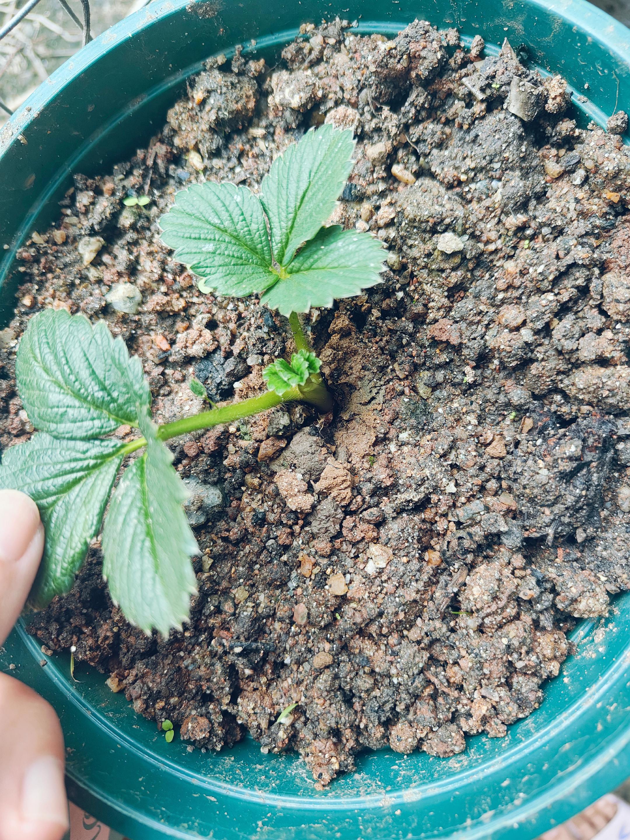 草莓苗。种了半个月,是所谓的伏地魔吗?