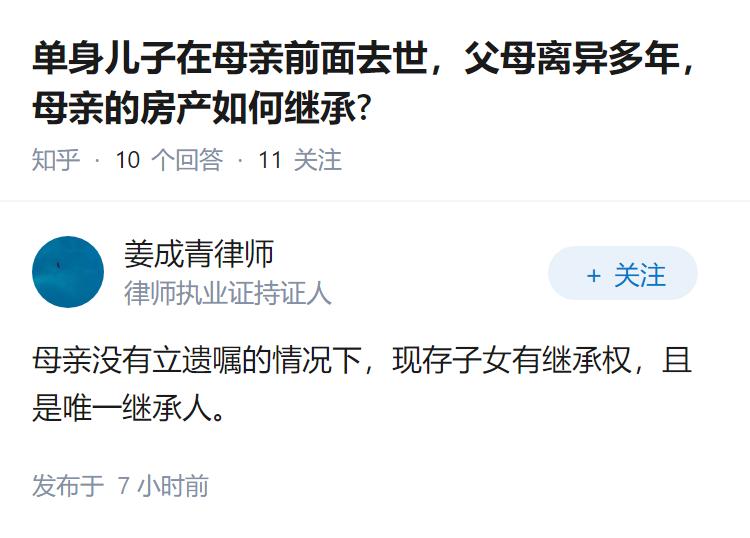 单身儿子在母亲前面去世,父母离异多年,母亲的房产如何继承?
