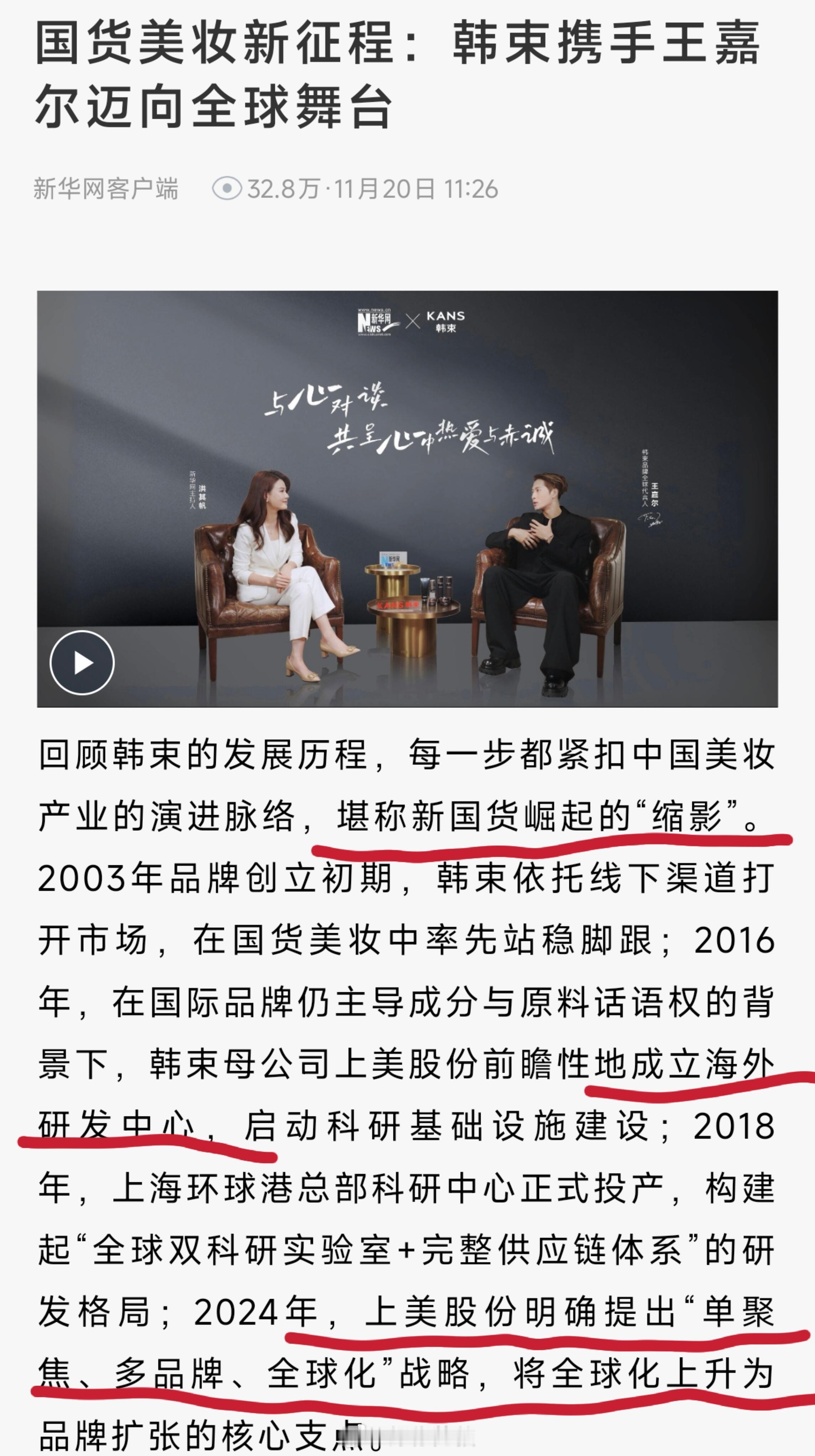 不愧是王嘉尔,事业粉看的真爽!看完新华网的采访,才知道嘉尔在选择合作伙伴上,有着更大的野心-把国货推向世界。王嘉尔说自己选择花大量时间在海外,不仅是为了舞台,更是想把华人的作品、中国的文化带到世界面前。而韩束的出海之路,同样藏着这份“中国品牌当自强”的野心。作为粉丝,看着他们一起把中国品牌、中国文化推向世界,为粉上这样的人而骄傲(叉腰)