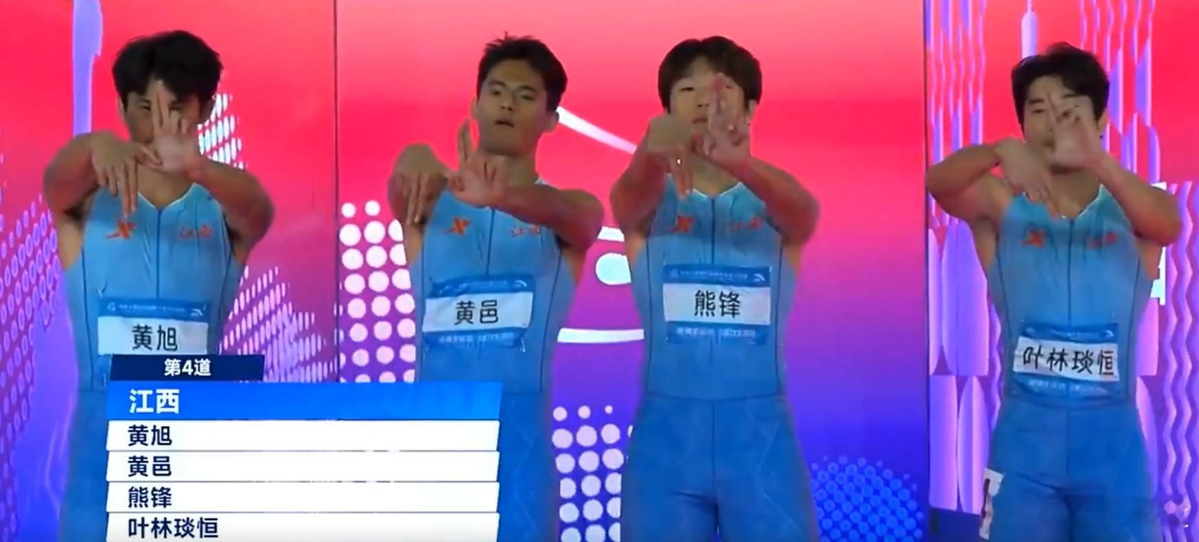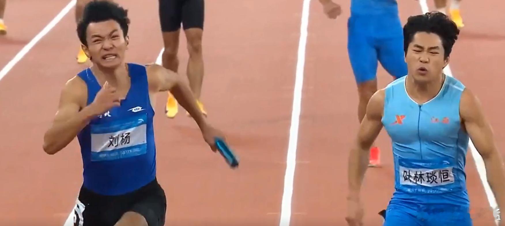 终点线前才见分晓 湖北队神勇逆转夺男子4X100米冠军 苏炳添最后一战0.03秒只差无缘奖牌11月20日晚,全运会田径大项结束了男子4X100米决赛争夺。李孟源、李泽洋、刘柯和刘杨组成的湖北队,以38秒60获得冠军,江西队38秒64获得亚军,江苏队38秒68获得季军。本场比赛是苏炳添运动员生涯的最后一场比赛。比赛开始!苏炳添跑第一棒的广东队先出现问题!二棒选手刘洪熙可能太紧张,启动过早,和苏炳添这里配合失误。刘洪熙几乎跑过接棒区,刹车后再接苏炳添的棒,广东队上来就落在后手!湖北队二棒李泽洋,本届全运男子100米冠军,但他这棒平跑效果没看出多大优势。二棒三棒各队转接迅猛,配合流畅,广东队靠施君豪的超级三棒,重新追到前列。湖北队刘柯拼得顽强,为队伍抢到一点点先机!终极棒开始!四川队三棒王琦和四棒邓智舰配合有误,原本局面不错的四川队立刻失去机会!此时湖北队刘杨和江西队叶林琰恒并驾齐驱。从远端看,广东陈冠锋稍稍领先江苏陈锦丰一点点排在第三。四将杀向终点!刘杨起速不利,叶林琰恒和陈冠锋一度微弱领先,但刘杨最后50米开挂,连续超过两人,终点线前领先半个身位抢先到达!湖北队夺冠, 男女队包揽4X100米双冠。江西队亚军,陈锦丰最后时刻反超陈冠峰,江苏队季军。广东队0.03秒之差获得第四,苏炳添职业生涯最后一战遗憾无缘奖牌。