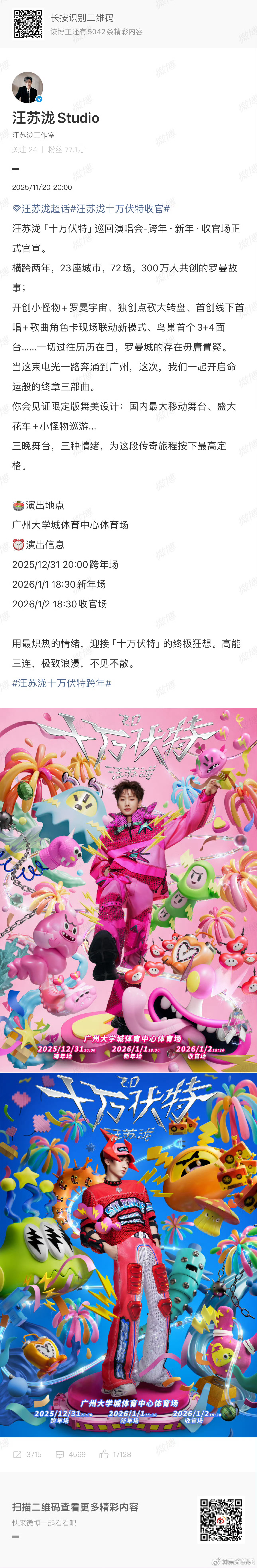 汪苏泷「十万伏特」终极三部曲迎收官!「十万伏特」两年横跨23座城市,72场演唱会与300万人共创罗曼故事真的要收官了, 一切顺利!