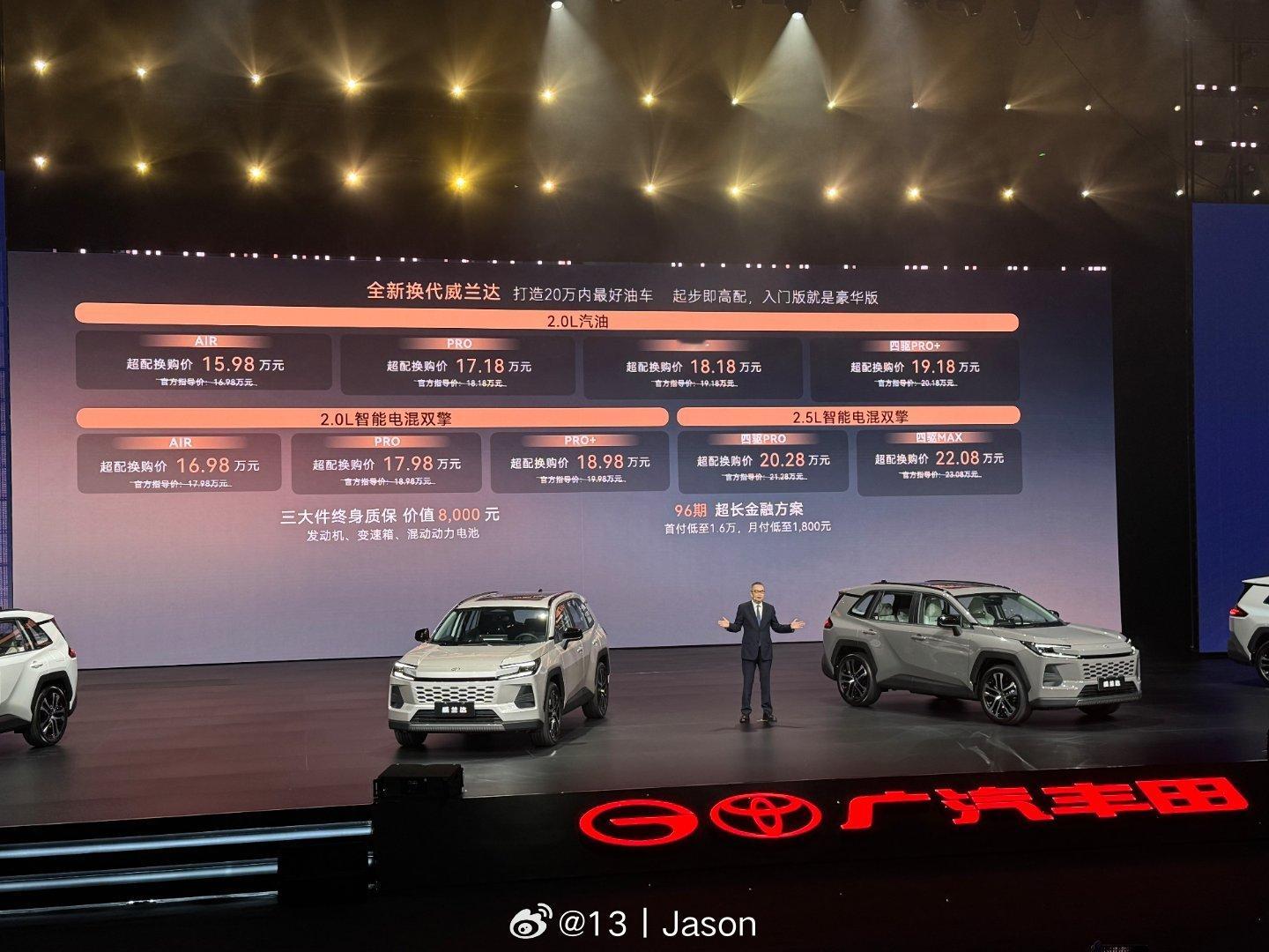 正式换代登场,起步即高配!全新威兰达开启「高配下放」价格策略:全系享受1万元置换补贴,叠加政策后超配换购价低至15.98万起,把用户最关心的核心配置一次到位,性价比直接拉满。显然大量中高配功能下放为全系标配,起步更厚道,预算友好,定价值得入手。基于域控架构的智舱+智驾加持,配合第五代智能电混双擎,日常更省、更顺;同时提供四驱配置,兼顾通勤与远行。不难看出,广汽丰田一边用威兰达重构油车的智能化底层、重塑合资油车竞争力;一边以纯电旗舰铂智7拓宽技术版图——油电并进的产品矩阵,后续表现值得期待。