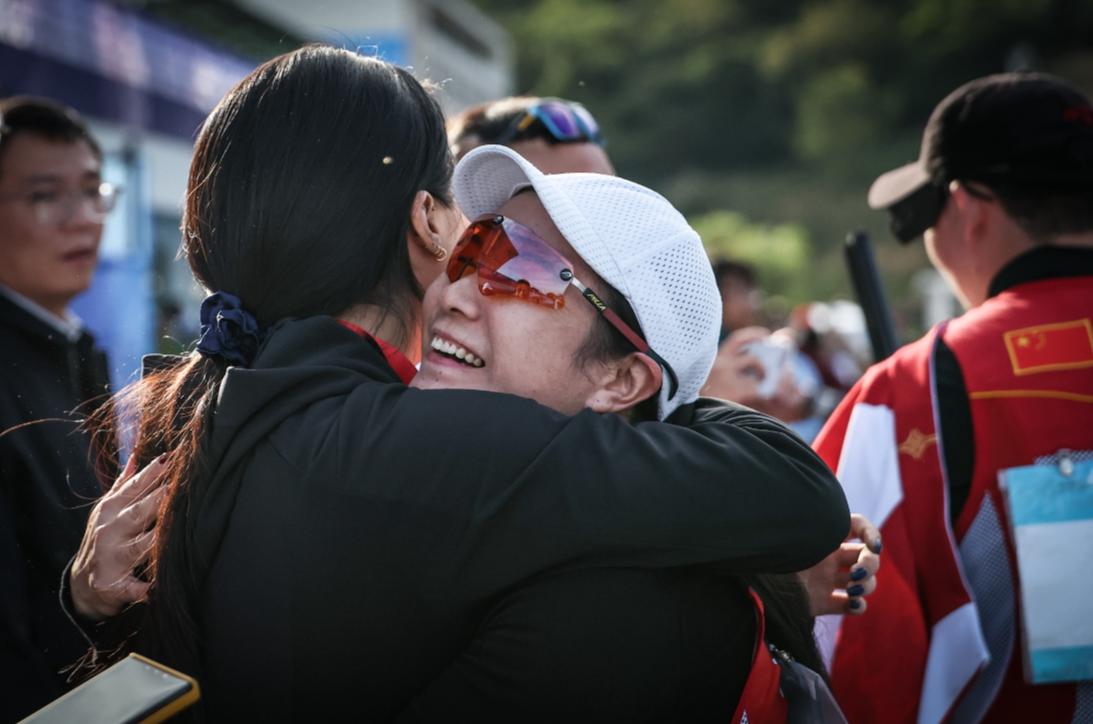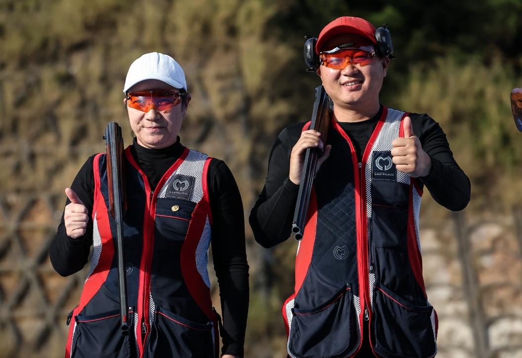 昨天进行的第十五届全国运动会飞碟多向混合团体比赛,湖南队八战全运的54岁老将刘英姿搭档34岁的郭雨浩,在最终金牌战以44中对42中击败陕西队组合肖金佳/段宇薇,夺得冠军。