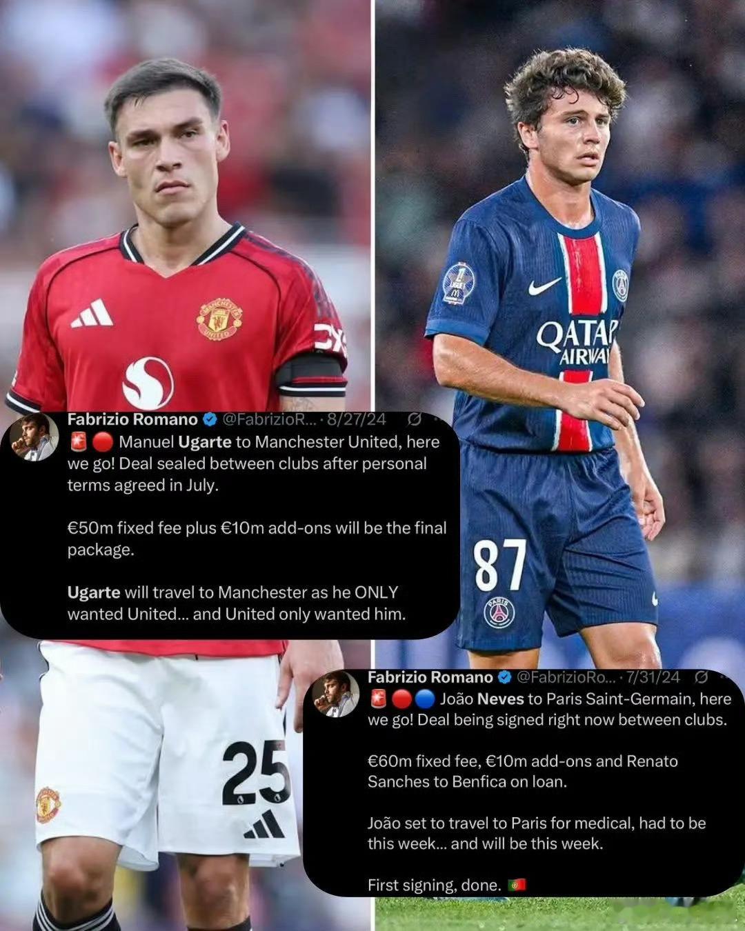 去年若昂·内维斯与乌加特的身价差距仅1000万欧元——而滕哈格执教的曼联当时坚信乌加特是更优选择。当时本菲卡为内维斯标出天价仿佛是在吓退买家,乌加特则显得是"更稳妥、更明智"的选择。转眼至今…现实着实残酷——若昂·内维斯已融入巴黎圣日耳曼的中场,冷静从容、扛逼抢能力强,展现出的成熟度正是我们急需的。而乌加特?拼劲有余而掌控不足。当卡塞米罗离场时,整个中场体系瞬间崩塌——21岁的内维斯已能扛起的重任,乌加特至今仍无法承接。回看当初,这1000万欧元的差价毫无意义。内维斯才是天花板更高、特质更契合、能长期支撑体系的人选…而球队竟被标价吓退,或是因滕哈格更偏爱乌加特。曼联押错了中场核心。如今真相残酷。内维斯本该是优先目标。下次绝不能再让真命天子从指缝溜走。