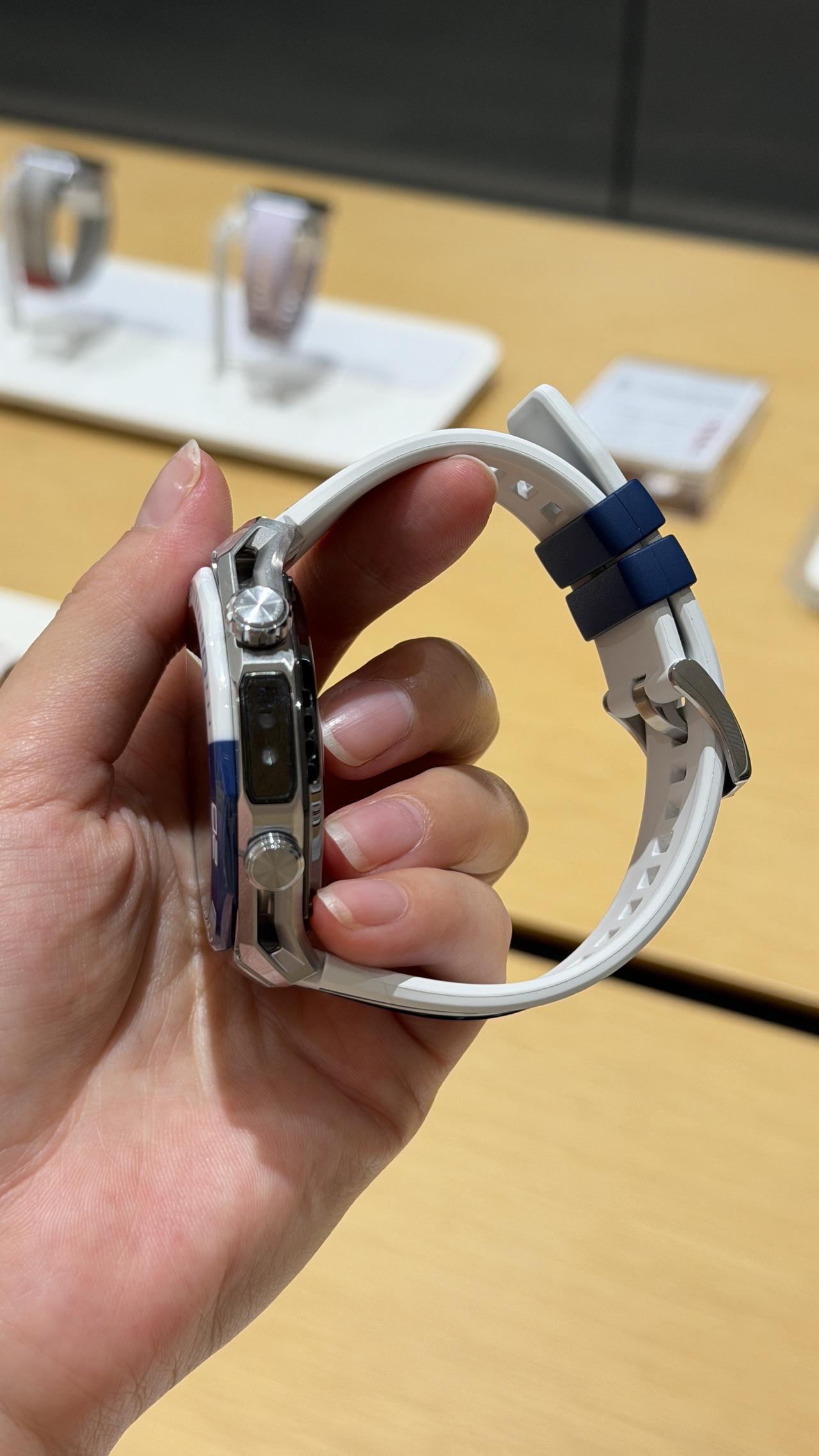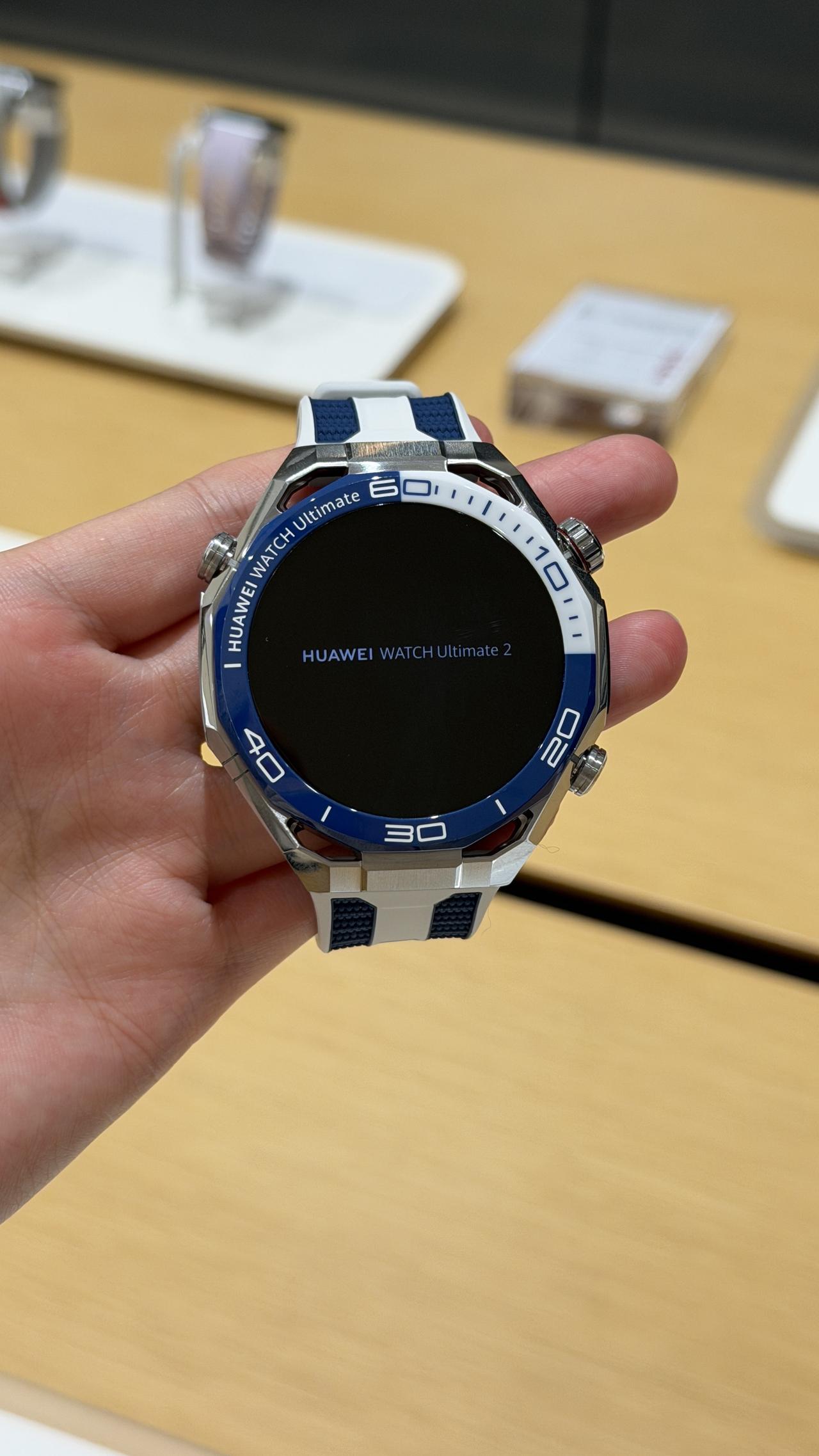 昨天在华为店看到了华为 WATCH Ultimate 2,表盘好大大大大大,拿在手里很有份量。 这块手表首次加入海豚声呐通信,无需外置配件(业界首款)就可实现水下 30 米互发消息、60 米发出 SOS 信号,适合专业选手佩戴,普通人买一个HUAWEI WATCH 5/GT 6/GT 6 Pro差不多了。
