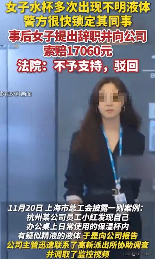 浙江杭州,小红在公司上班时,拿起保温杯喝水,竟发现杯中液体黏糊糊疑似精液,恶心不已的她马上联系主管报了警,民警查看监控锁定嫌疑人是其男同事,此人因小红漂亮心生邪念,三次作案,更气人的是领导还想包庇,小红咽不下这口气离职,还要求公司赔偿17060元,结果却让人意外。 2011年12月,小红入职杭州一家公司。 2014年5月,小红准备用保温杯喝水时,发现杯中液体有杂质,当时没多想就倒掉了。 可没过几天,同样情况再次出现,这次她仔细一看,液体黏糊糊的,心里顿时涌起一个预感,怀疑是精液,恶心得不行。 小红立刻向公司报告了这件事,主管得知后报了警,同时调取了公司的监控录像。 民警介入后,很快锁定了嫌疑人,竟然是小红的男同事张某。 原来,张某见小红长得漂亮,心生邪念,竟然三次往她的保温杯里排放精液,这种行为简直恶劣至极。 更让人不解的是,张某所在部门的领导马某,在得知此事后,不仅没有积极配合处理,反而让小红撤案,试图包庇张某。 小红对公司的处理态度失望透顶,也咽不下这口气,就选择了离职。 离职后的小红,觉得自己的权益受到了严重侵害,于是要求公司赔偿17060元。 她认为,公司没有尽到保护员工安全的义务,才导致自己遭受这样的伤害,公司必须为此负责。 然而,公司却拒绝了小红的赔偿要求。 小红不甘心,向劳动仲裁机构申请仲裁,结果仲裁驳回了她的诉求。 小红没有放弃,又提起了诉讼。 公司是否应该为张某的恶劣行为承担赔偿责任,小红要求的经济补偿是否合理合法。 小红觉得自己在公司遭遇了如此不堪的事情,公司有不可推卸的责任,赔偿是理所当然的。 她认为,公司作为工作场所的管理者,有义务保障员工的人身安全和合法权益,而张某的行为明显是在公司内发生的,公司没有及时发现和制止,就是失职。 公司觉得自己很冤枉,认为张某的行为完全是他个人的恶意违法行为,这种行为超出了公司可预见的管控范围。 公司在得知此事后,也第一时间报了警,积极配合调查,还调取了监控录像,为案件的侦破提供了重要线索。 而且,公司也按照规定辞退了张某,已经履行了自己应尽的义务。 小红要求的经济补偿,缺乏合理的依据,公司无法接受。 以法律分析,这事到底该怎么看呢?小红要求公司赔偿的诉求,在法律上能得到支持吗? 根据劳动合同法相关规定,用人单位有义务为劳动者提供安全卫生的工作环境和条件,保障劳动者的人身安全。但这里的关键在于,用人单位是否尽到了合理的注意和管理义务。 张某的行为是他个人主观上故意实施的恶意违法行为,这种行为具有突发性和隐蔽性,公司很难提前预见和防范。 公司在得知情况后,及时联系了警方,调取了监控录像,为案件的侦破提供了帮助,并且在查明事实后,果断辞退了张某,这些行为都表明公司已经尽到了相应的管理义务。 小红要求公司给予经济补偿,需要满足一定的条件。 根据法律规定,劳动者因用人单位的过错而解除劳动合同的,用人单位才应当支付经济补偿。 在这起事件中,虽然小红是因为张某的恶劣行为而离职,但张某的行为并不代表公司的意志,领导马某让小红撤案的行为,也不能等同于公司的行为。 公司本身并没有过错,也没有直接导致小红辞职,所以小红要求公司给予经济补偿的诉求,缺乏法律依据。 领导马某让小红撤案的行为,是否代表公司行为,公司是否要为此担责? 领导马某让小红撤案,这只是他个人的行为,不能代表公司的意志。 公司作为一个法人主体,其行为应该通过公司的正式决策程序和授权来体现。 马某没有得到公司的明确授权,擅自要求小红撤案,这是他个人的越权行为,公司不需要为他的个人行为承担责任。 除非有证据证明公司授权马某处理此事,或者公司事后追认了马某的行为,否则公司不承担由此产生的法律后果。 小红能否以受到精神损害为由,要求公司赔偿精神损失费? 民法典规定,侵害自然人人身权益造成严重精神损害的,被侵权人有权请求精神损害赔偿。 但在这起事件中,造成小红精神损害的是张某的个人行为,而不是公司的行为。 公司虽然在工作场所管理上存在一定的责任,但并没有直接实施侵害小红精神权益的行为。 所以,小红以受到精神损害为由要求公司赔偿精神损失费,缺乏法律依据。 最终,法院经过审理,驳回了小红的诉求。