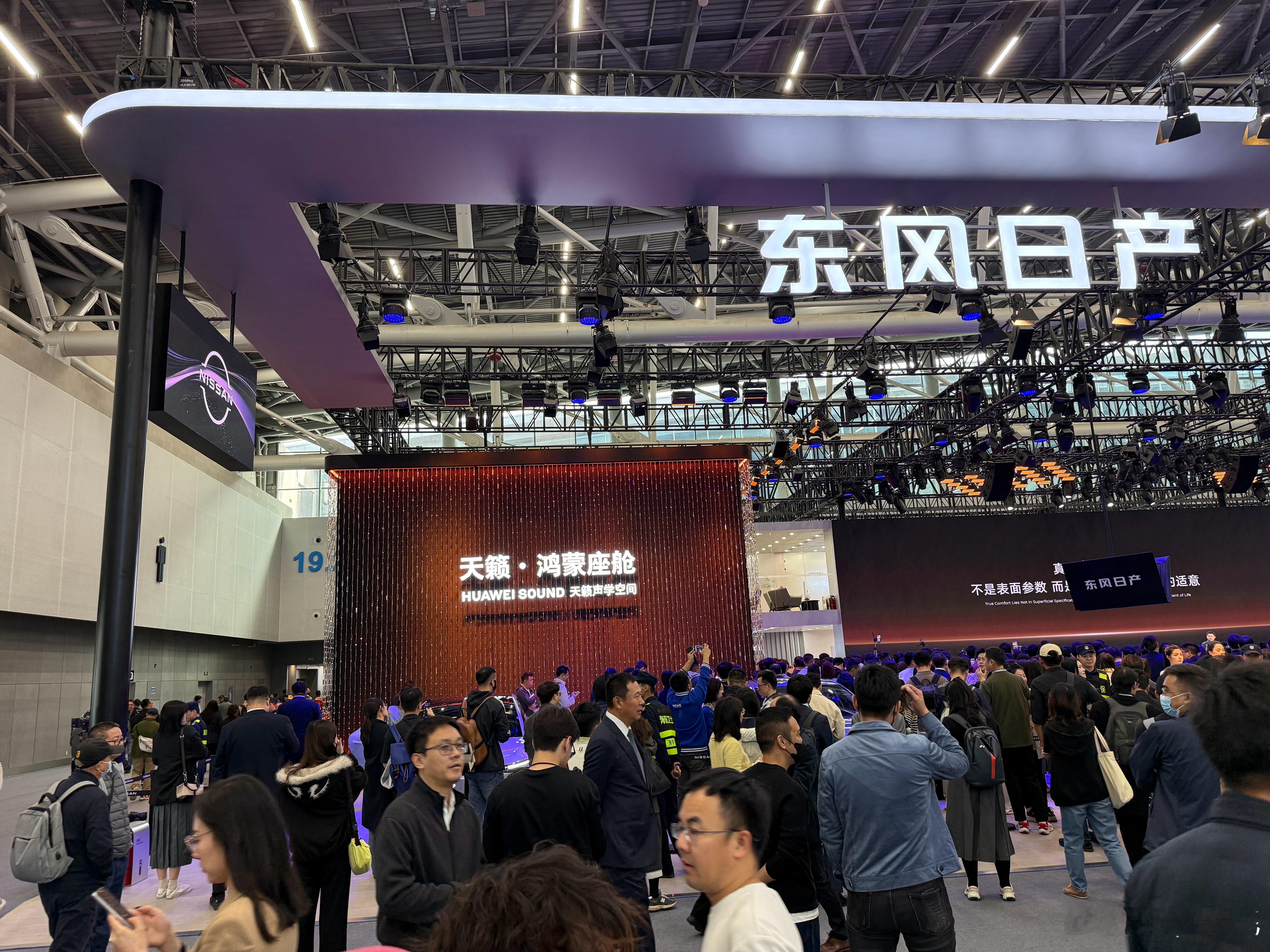 看看鸿蒙智行五界聚首的气势,每个车标下面就是对应品牌的展车
