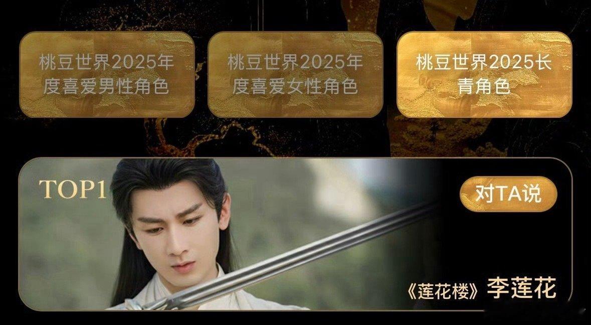 成毅王权富贵获得爱奇艺2025年度喜爱男性角色top1,李莲花长青角色top1!恭喜ee