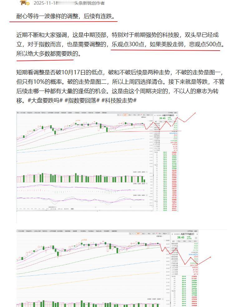 暂时依然不打算抄底,下周再等一次普跌低吸。 简单说几句: ①.恐慌盘不够,今日虽然半日释放了2000亿的恐慌盘,但周三和周四不会只出今日一根阴线,倒不如周三周三不护,加速底部到了。既然是中期顶部,横盘了2个月,这波是连跌和急跌,中途可能是反弹,但反弹之后依然会杀跌。 ②今日大跌有外围因素加速A股下跌,主要是外围的存储和英伟达产业链,日韩这波牛市就是因为这个才涨的,A股也是跟随他们涨的,目前日韩还是高位才开始跌,今日大都没有任何抵抗,所以目前看科技股下跌力度不够,不会一日跌完, ③.证券板块跌幅不够,前面说到,既然是中期顶部确立,那证券必须是放量中大阴破位下行,目前看确实破位中阴了,但跌幅不够,还需要寻底。 下周才开始逐渐低吸,再杀一波恐慌盘基本就够了。 现在还是用之前的趋势图,等周末再更新新的。 中途有小反抽直接放弃。 跌到位了,反弹主线就能确立了。