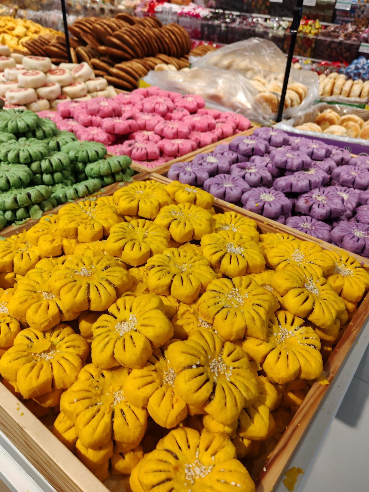 阿姨劝我嫑买 11月21日,下午我要去临潼疗养院看望公婆,他们二老喜欢吃点小点心,这会儿我来到超市寻觅。 老陕人喜欢水晶饼,绿豆糕,软香酥一类的,一到糕点区,发现花花绿绿的一大片,除了以前见的那种传统糕点,近来又上了很多花式糕点,见图一,金黄色的,粉红色的,酱紫色的,草绿色的,做的像花瓣一样,很是漂亮。 我仔细看了一下,这些花式糕点,有三种口味,豆沙、枣泥和玫瑰味,看上去颜值高,似乎很美味的样子,比起旁边框子里软香酥的土样,的确要赏心悦目一些。 我拿起袋子正准备装,旁边选购的一个阿姨给我说,叫我别买这些花的,中看不中用,她说就买原色,彩色的都加了色素,吃了对身体不好。 我犹豫了,食品色素只要不过量,应该没啥问题吧,色素粉是植物提取的,这方面不太懂,想问问大家,这种彩色的糕点,能放心购买吗?