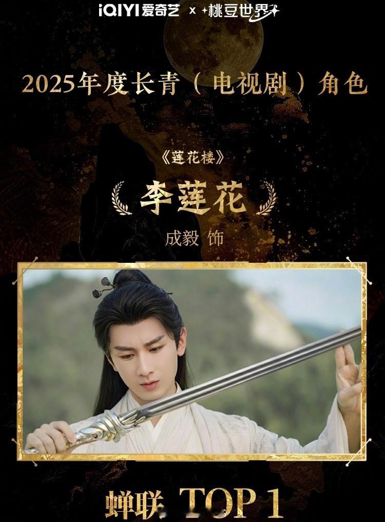 恭喜成毅李莲花2025年度长青电视剧角色蝉联TOP1啦!