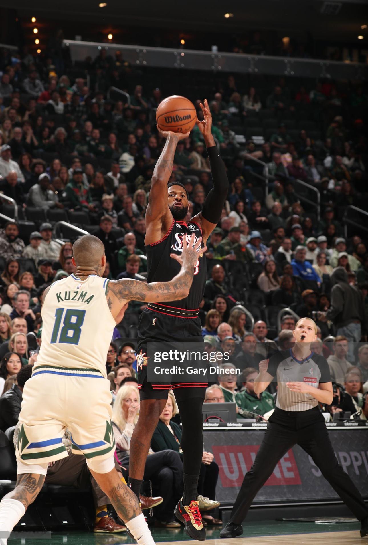 全场比赛结束:76人队客场背靠背加时123-114战胜雄鹿队!渐入佳境!乔治今日受时间限制仅上场不到25分钟,12投7中,三分7中4,罚球4中3,得到21分5篮板3助攻2抢断,『3失误』,正负值+3!