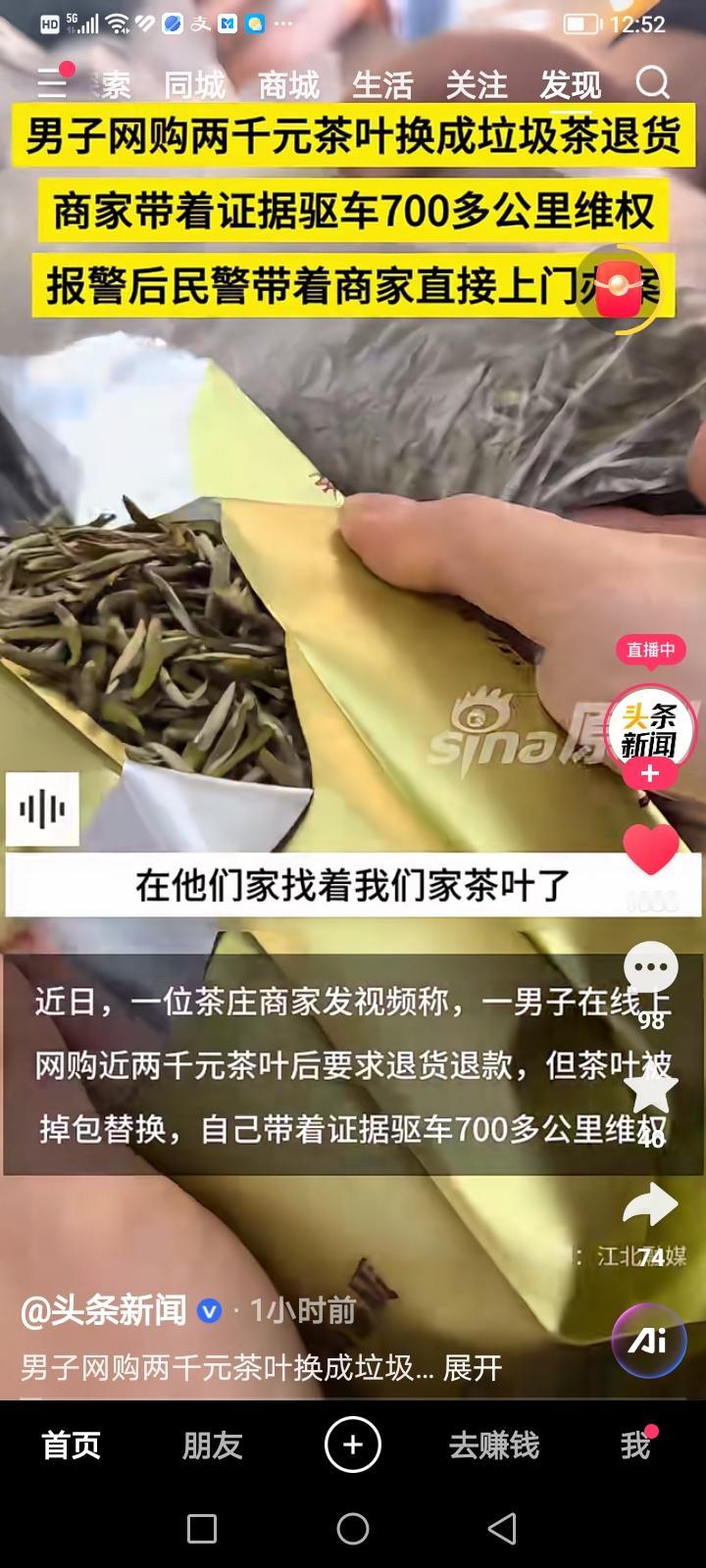 一些打算白嫖商家的人我劝你做人要厚道,不然被人赃并获就很难看了。2025年11月,河北一家茶庄的商家遇到了这样的糟心事,还特意驱车跨省维权成功。 1. 调包退货:11月3日,河南许昌的王先生在该商家的线上店铺买了半斤女儿环、四两王中王、半斤飘雪王三款高档茶叶,共消费1784元。3天后他申请退货退款,商家收到退回包裹时,发现三款茶叶的包装底部都被拆开,里面的好茶全被换成了劣质茶,订单附赠的老板杯也没退回。商家联系王先生对峙,对方直接否认了调包行为。 2. 跨省维权:为保住自身权益,商家带着相关证据,驱车761公里从河北廊坊赶到河南许昌。到当地后商家立刻报警,警方核实情况后立案,并陪着商家一起上门找王先生。 3. 人赃并获:民警在王先生家中当场找到了被调包的同款好茶,哪怕证据确凿,王先生仍试图狡辩。之后他被民警带回派出所进一步处理,目前案件已立案,他大概率会被按《治安管理处罚法》处以行政处罚。(图片信息来源:头条新闻)白嫖 网购白嫖 网络白嫖 网购白嫖党 白嫖女子 上海白嫖事件