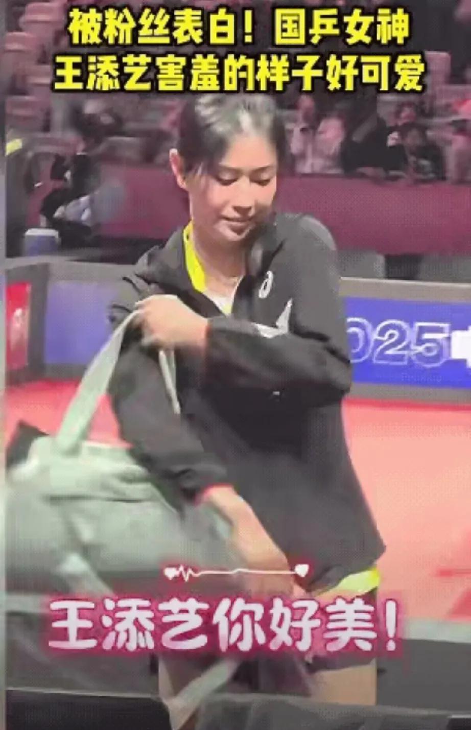 乒坛惊现超甜一幕!河北队虽在女团总决赛输给山东队,却意外收获浪漫。被称为乒坛第一美女的王添艺,在收拾包裹准备离场时,被河北队球迷大喊“你好美”。 她瞬间害羞脸红,这少女般的反应太戳人!王添艺2002年生于济南,实力超强,曾和刘丁硕搭档混双打败“莎头组合”,还是孙颖莎陪练。 此次她一人打两场,虽双打、单打都输给山东队,但全力以赴,单打对战奥运冠军陈梦,每一球都拼到筋疲力尽。输了金牌,却赢了球迷表白,这大概就是竞技体育的别样浪漫! 河北女队 全运会宝藏女孩 冀队姐妹花