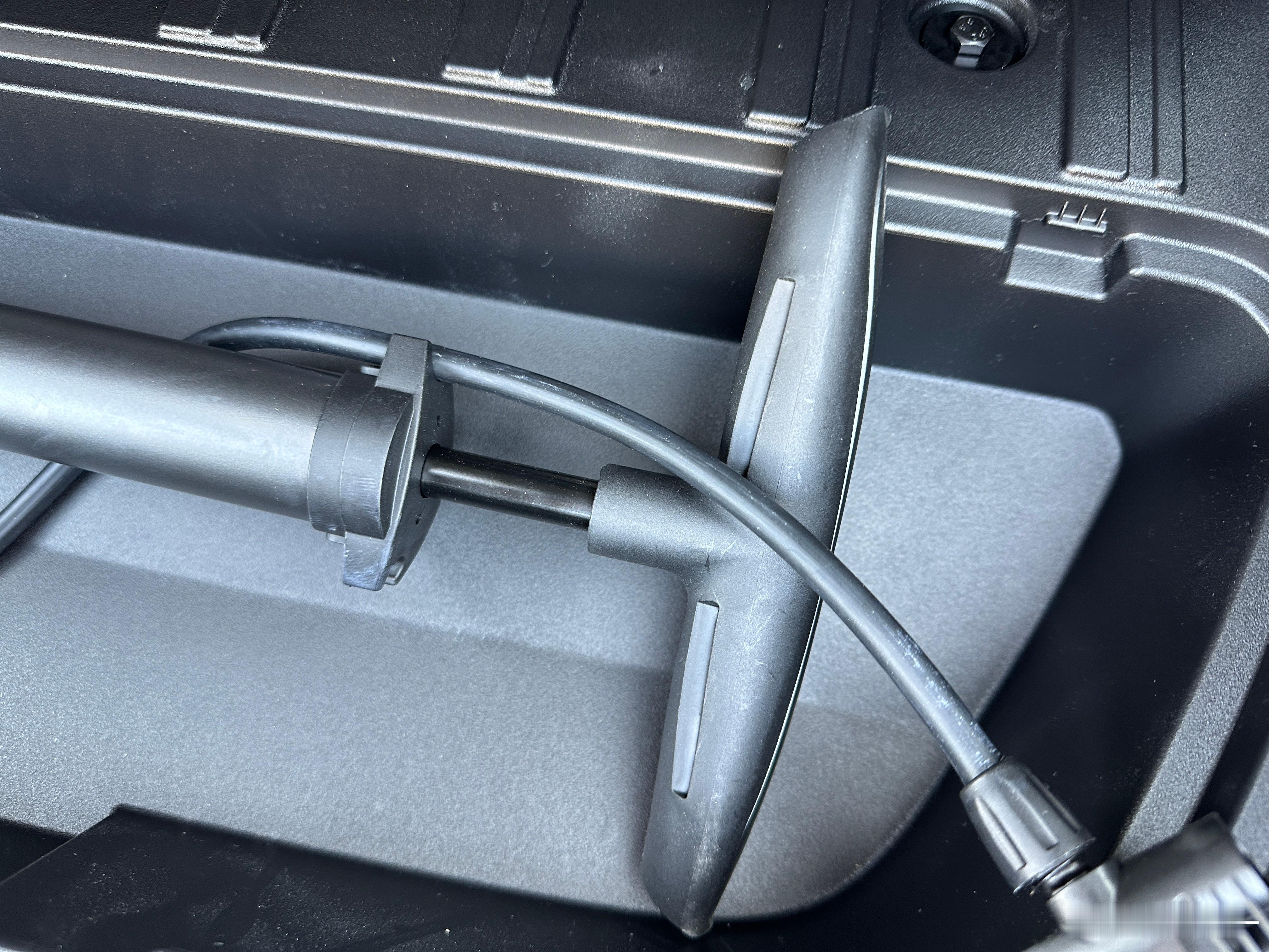 L90前备箱下面的暗格,差点就能放下一个标准打气筒了。