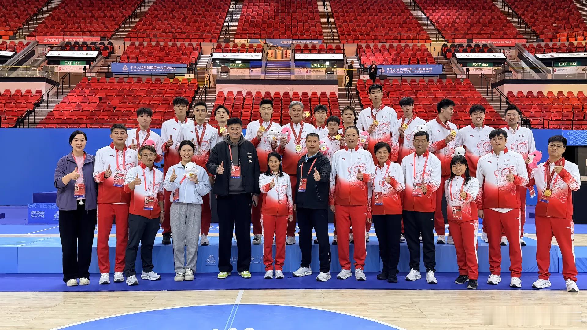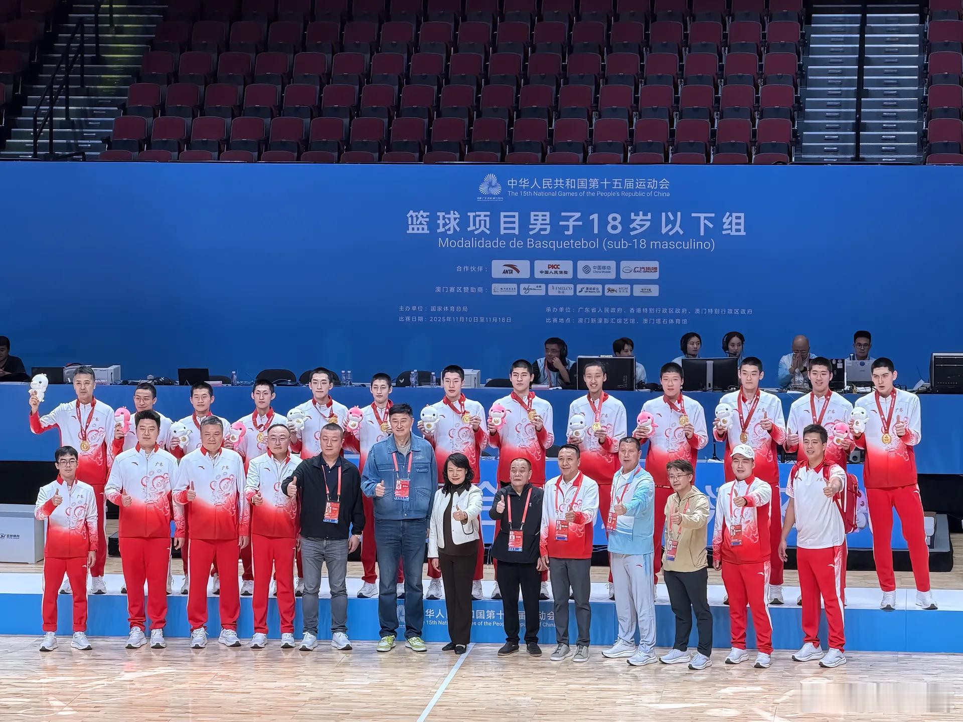 辛苦了,杜锋指导最新社媒分享夺冠大合照,并配文:广东_____!这次男子成年组欠杜导一个举高高啊