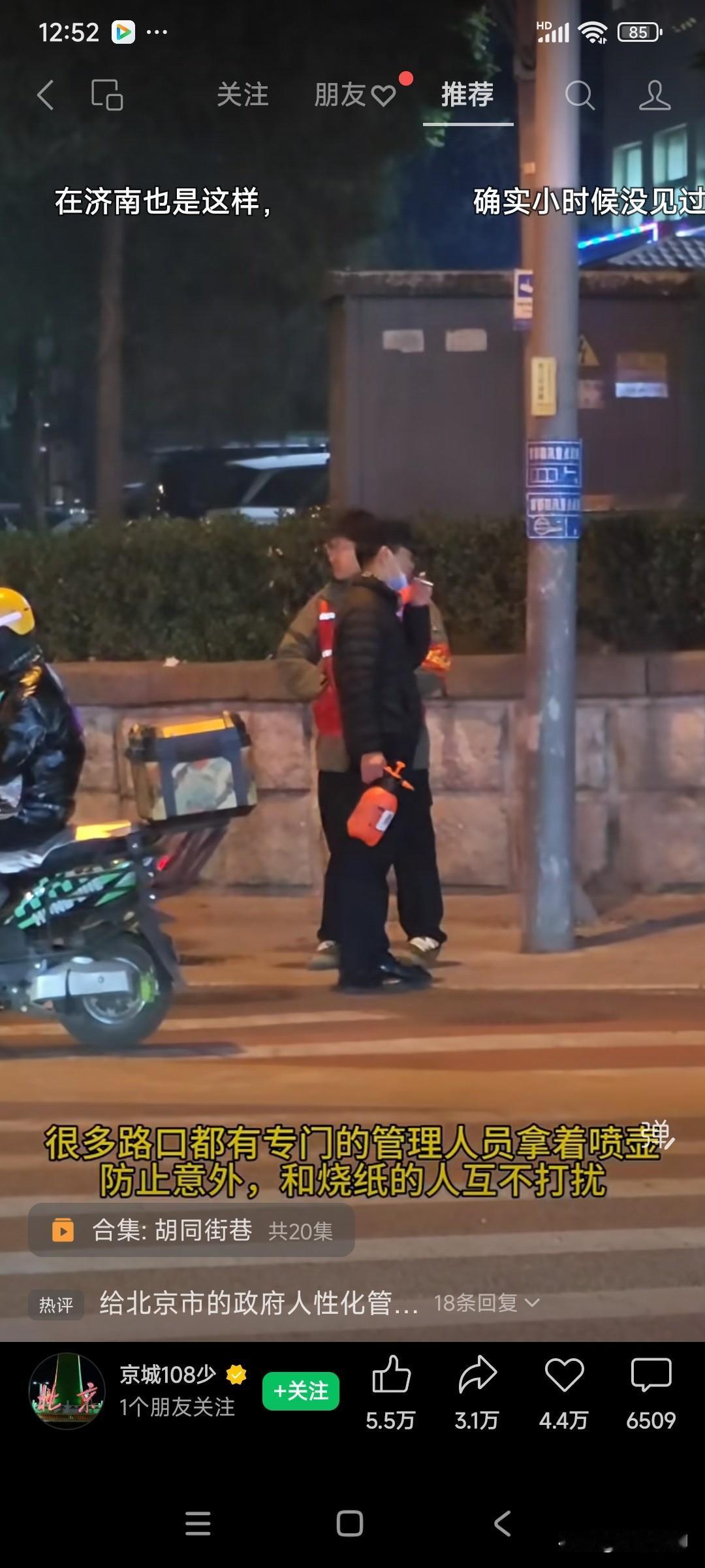 怀念亲人是中国千年传统,值得传承,但随着社会的发展,有些纪念方式是不是也需要与时俱进,其实现在很多纪念方式也是古人结合实际想出来的,我觉得在北京这样的大城市,烧纸的习俗的确需要改改了,现在把路口烧得路砖斑驳,满地画得乱七八糟,行人躲不过,一遍遍踩踏,思念为什么不能美好一些呢?原来我也是给老人烧纸,但是每次烧纸前,生怕刮风,因为道旁边都有树林,以免意外,我也曾目睹烧纸后一片灌木被烧,我急忙报警,其实心里感觉纯纯是应付风俗,草草了事,后来我感觉需要改变,现在给老人烧纸,我一般都用水书代替,把想烧的钱和思念,用水书写出来,水书蒸发飘上天空,把财富和思念随风带给天堂的亲人,这样的思念和牵挂多么的美好,又多么适合北京这样大都市的文化和环境呢!